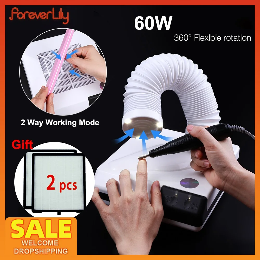 Voici les points importants à retenir sur l’Aspirateur de Poussière d’Ongles Professionnel 2 en 1, Machine de Manucure et Nail Art, 60W, LED :