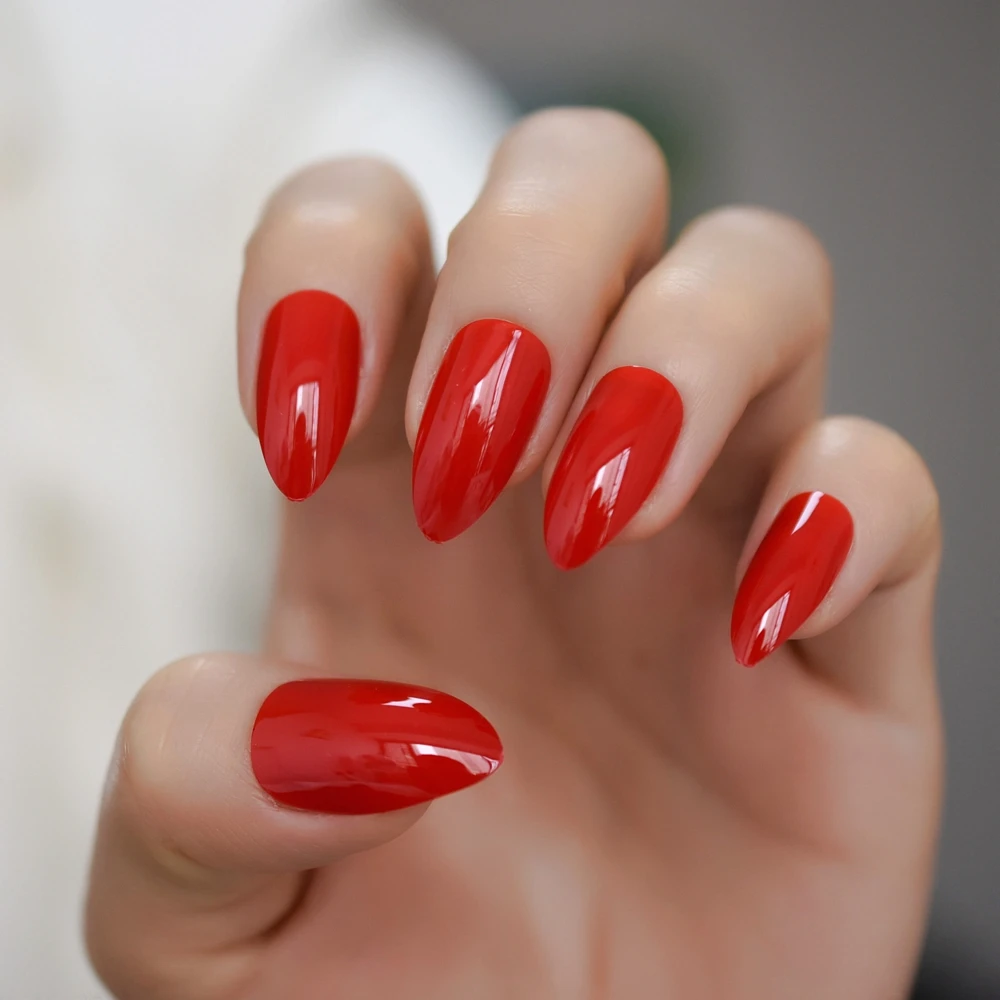 Les faux ongles en forme d’amande de couleur rouge brillant classique sont parfaits pour une utilisation quotidienne ou pour les fêtes. Ils sont dotés d’une surface brillante en gel UV super brillant qui leur donne un aspect professionnel. Cet ensemble comprend 24 pièces de faux ongles faciles à appliquer.