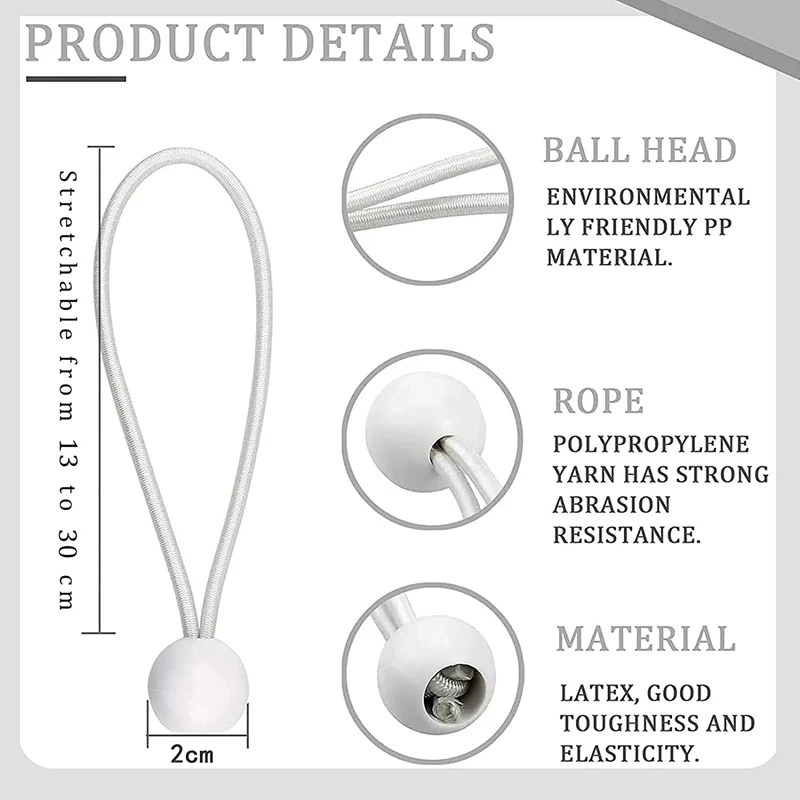 Les attaches élastiques pour bannières, chapiteaux, tentes, bâtons et bâche sont des accessoires essentiels pour tout événement en plein air. Ce lot de 50 attaches élastiques offre une grande praticité et durabilité. Fabriqués dans un matériau de haute qualité, ces élastiques à billes sont robustes et peuvent être utilisés dans de nombreuses situations différentes.