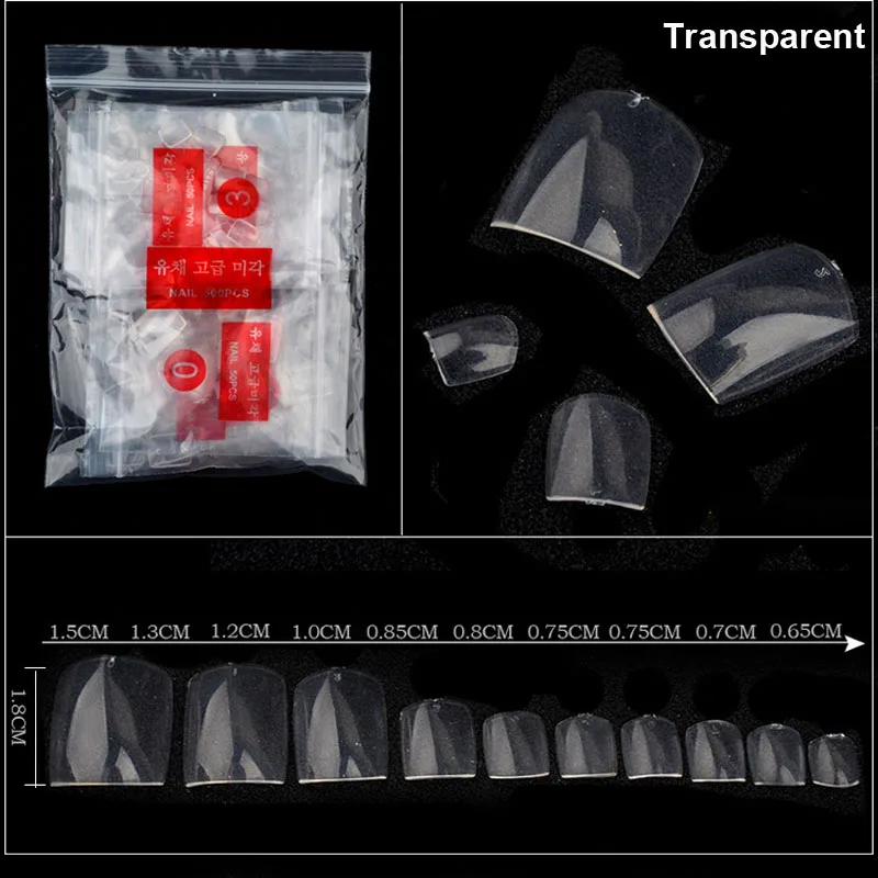 Le paquet contient 500 pièces de faux ongles carrés en acrylique.