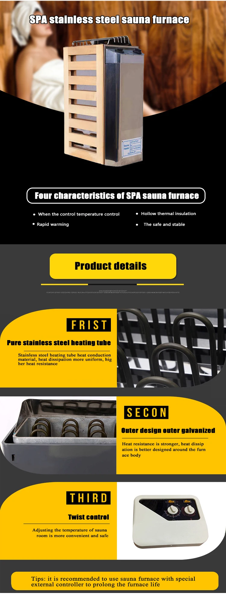 Chauffage de sauna électrique en acier inoxydable