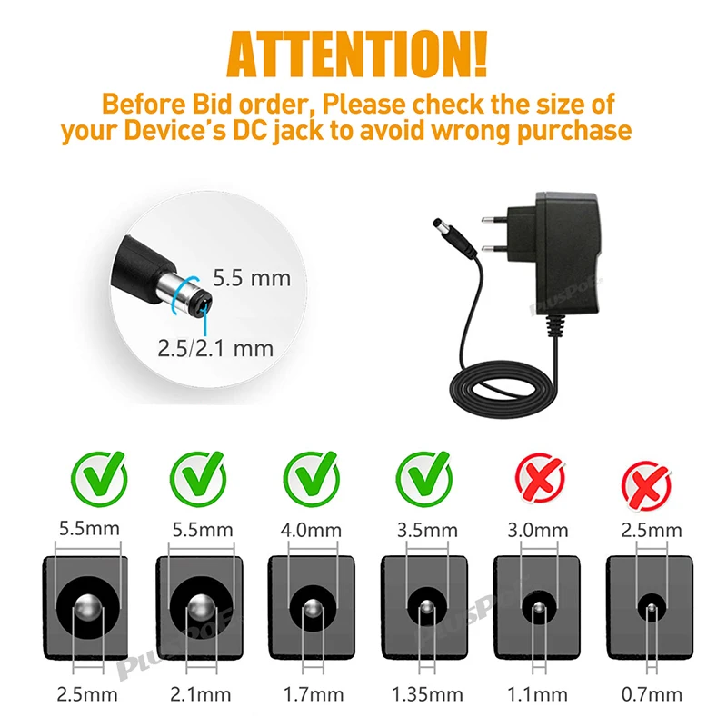 Chargeur d’alimentationTension de sortie: DC 9V-0.5A, 1A, 1.5A, 2A, 3A