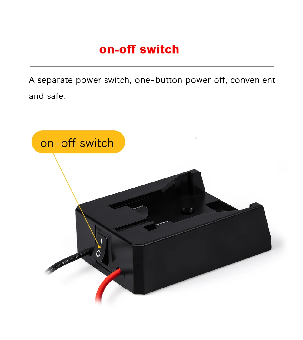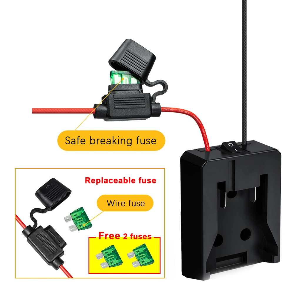 | Cet adaptateur de batterie externe convient aux batteries d’outils électriques Milwaukee. | Il est équipé d’interrupteurs et de fusibles pour une utilisation plus sécurisée. |