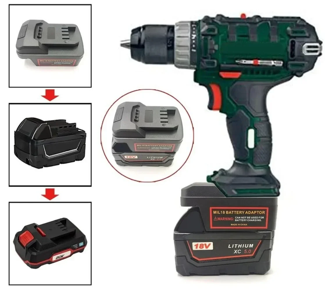 Le bas du convertisseur est compatible avec les batteries lithium-ion Milwaukee 18V, y compris les modèles 48-11-1880, 48-11-1835, 48-11-1865, et plus encore. Le haut du convertisseur est compatible avec les batteries Parkside PAP 20 A1, PAP 20 A3, PAP 20 B1, PAP 20 B3, et Parkside 20V XTeam Li-Ion Battery.