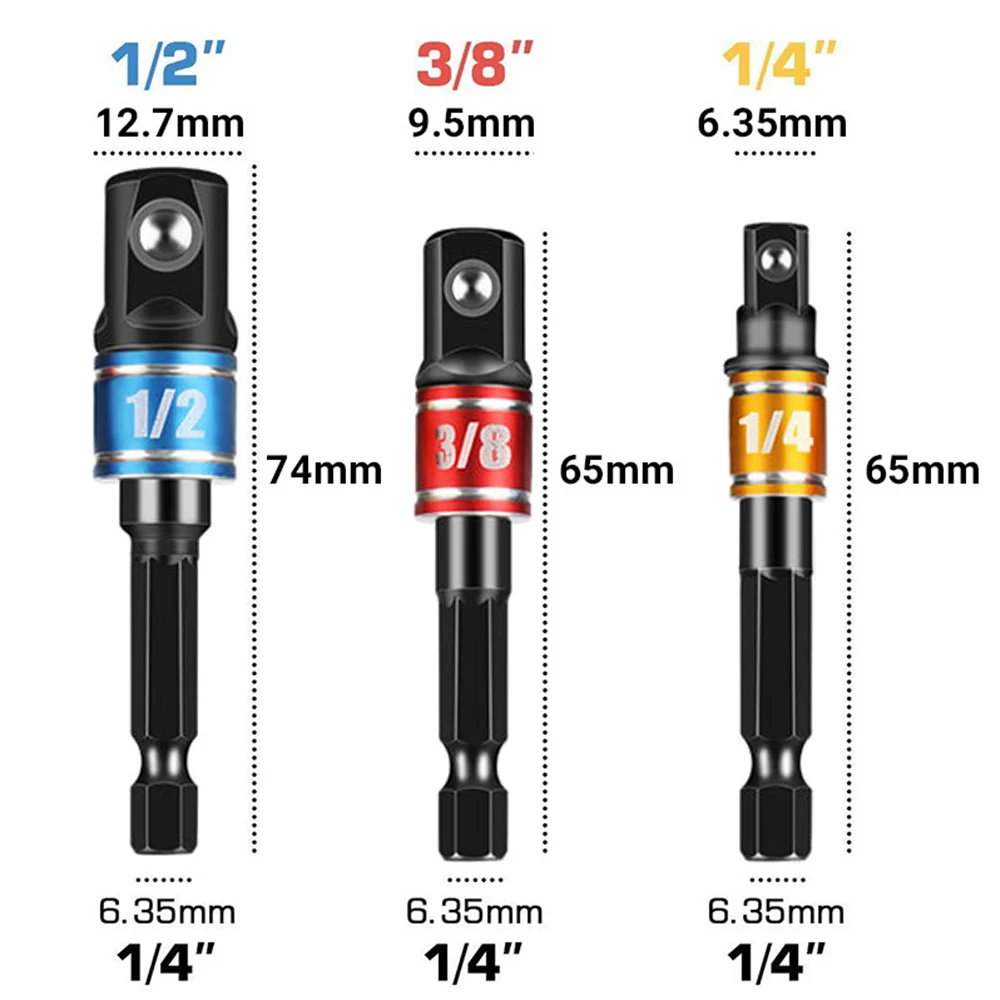 Prise Adaptateur Catégorie D’impact CR-V 1/4 « 3/8 » 1/2 « À Tige Hexagonale Carré Perceuse Électrique Prises Ensemble Conducteur Clé Extension Manchon