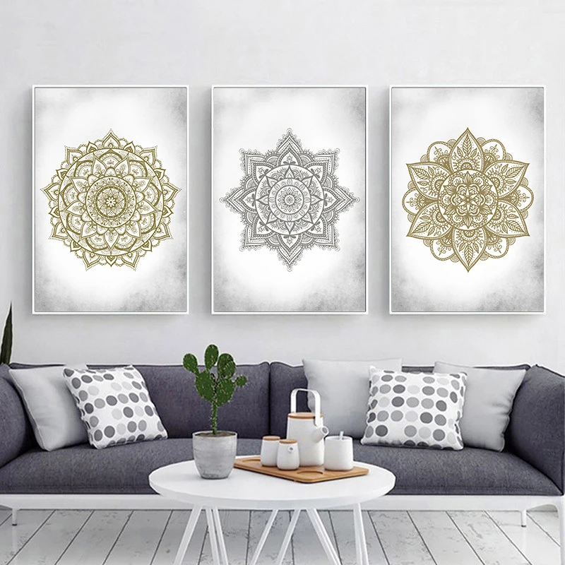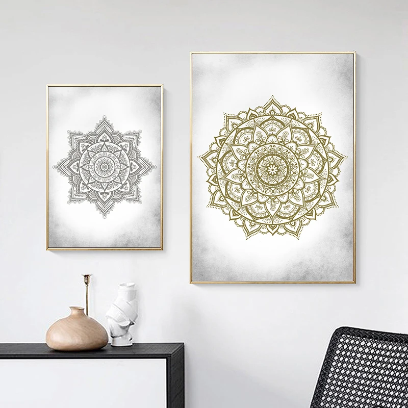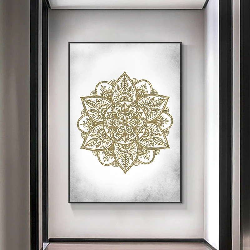 | Affiches de toile de mandala d’or d’art de mur de Boho | Affiches avec des motifs de mandala d’or sur toile. |