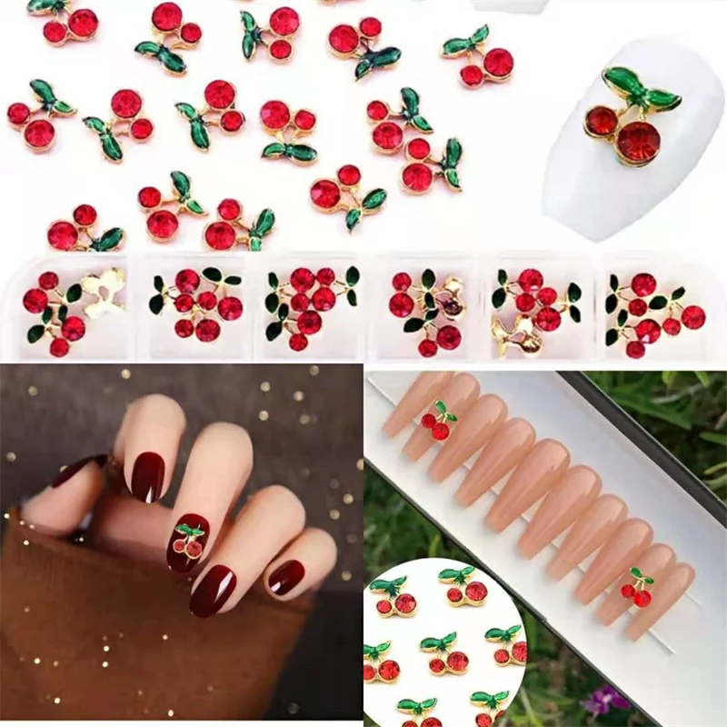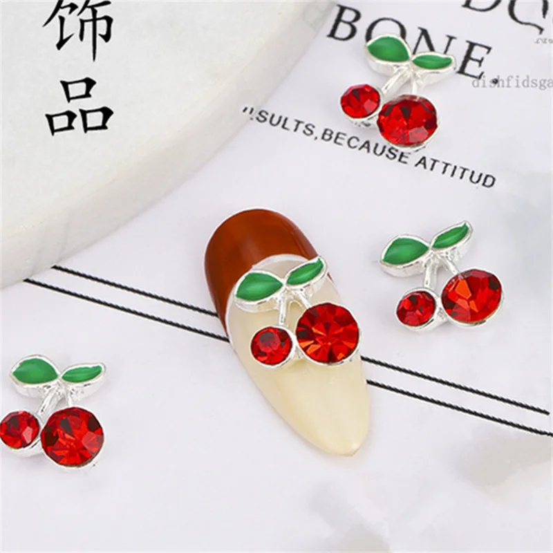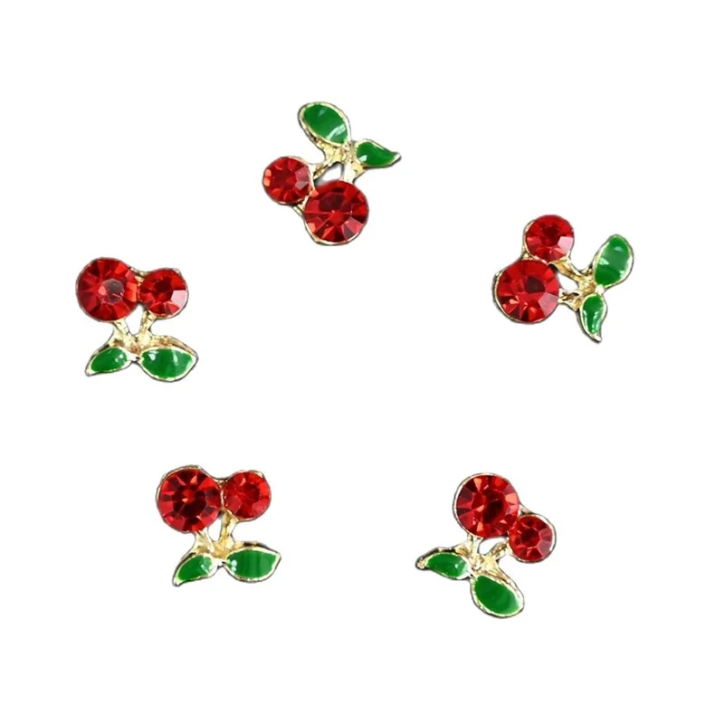 Sweet Cherry Nail Jewelry 3D Metal Alloy Rouge Rhinestone Nail Accessories Luxury Zircon Manucure Charms Cherry DIY Nail Decoration
