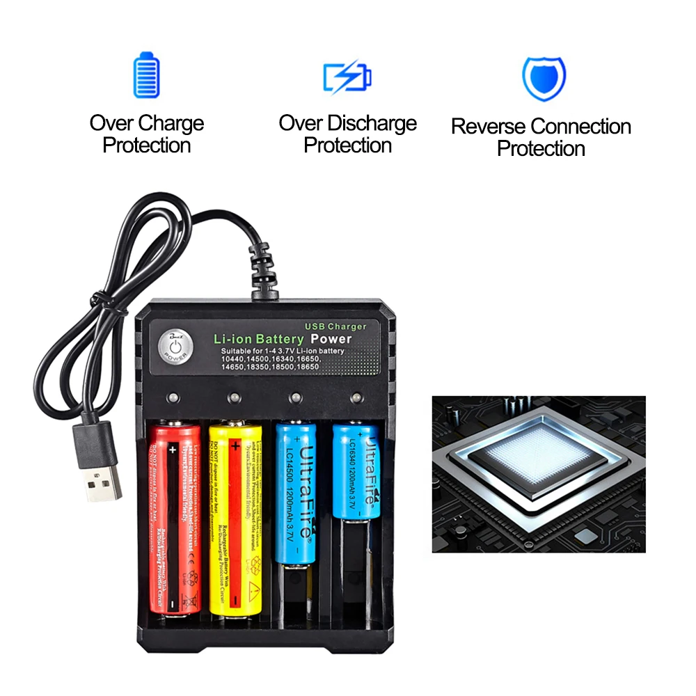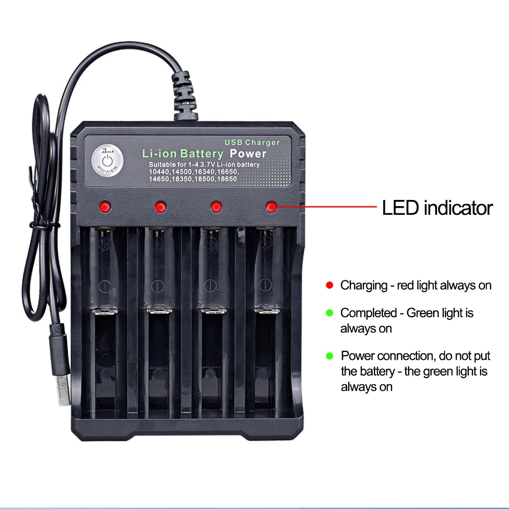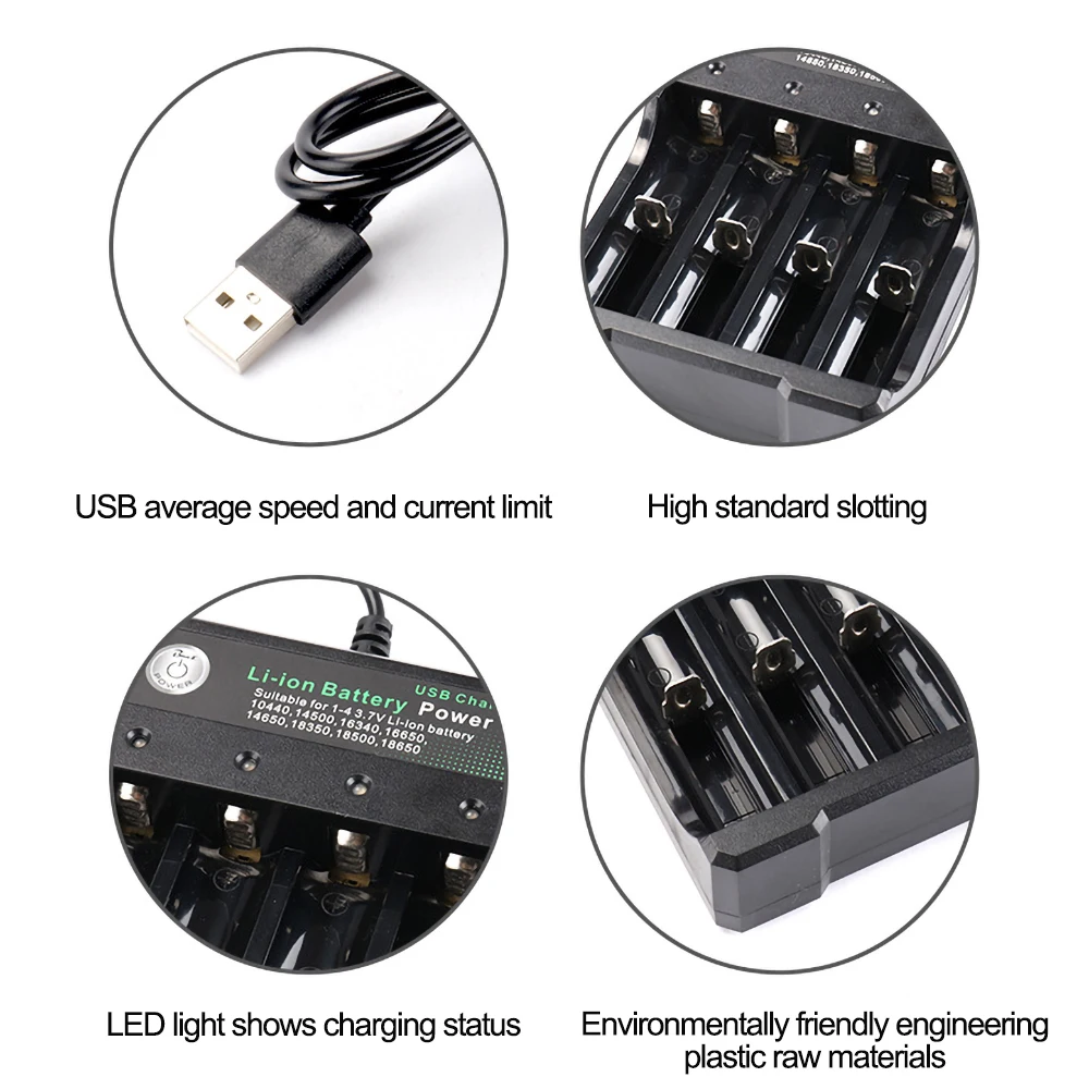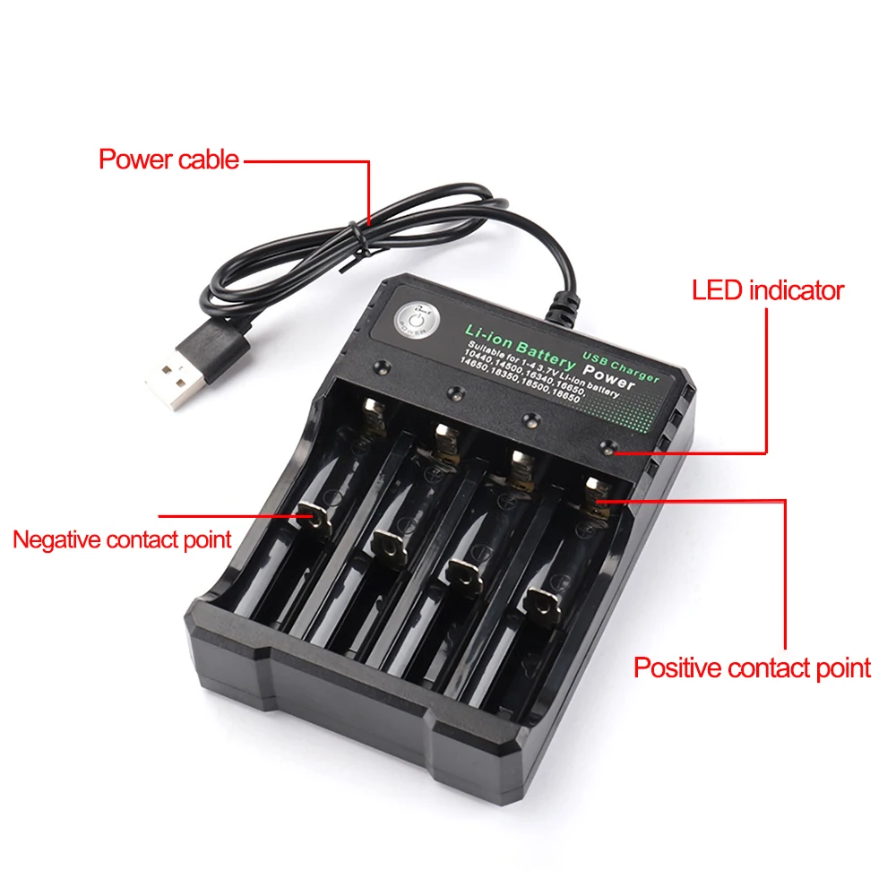 Le chargeur 18650 est un amplificateur de batterie au Lithium Li-ion 18650 V 4.2 avec chargeur indépendant à 4 fentes. Il est compatible avec les batteries 18500, 18350, 14650 et 16650.