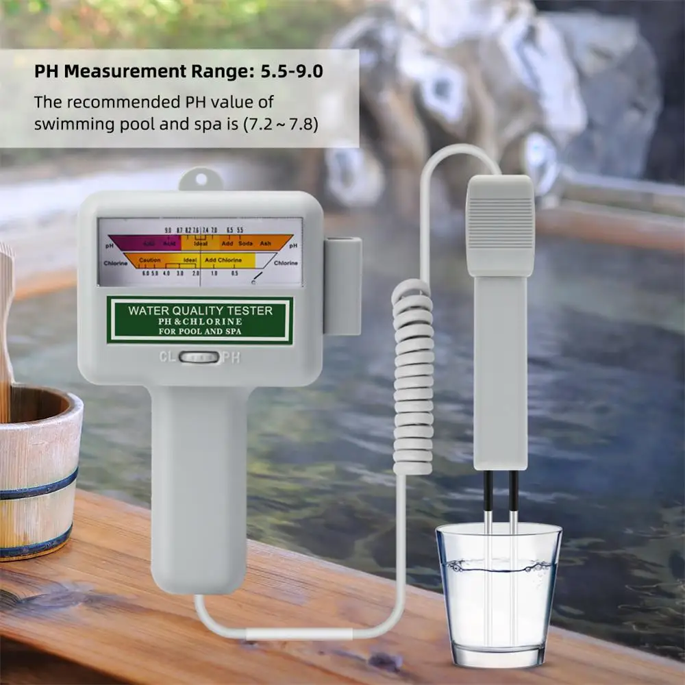Avant d’utiliser ce testeur de PH d’eau pour la première fois, veuillez ajuster le testeur au point de test, la précision de cet appareil est de 0.1, un outil pratique garantit votre santé (plage de mesure: PH 7.2-7.8). Remarque: chaque fois que vous utilisez ce testeur pour tester le niveau de chlore, Vous devez l’ajuster au « point d’ajustement » avant de le tester.