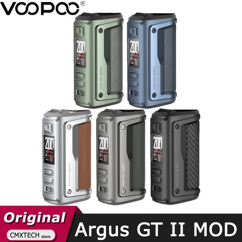 L’Original VOOPOO Argus GT II MOD 200W est un vaporisateur électronique de haute qualité. Alimenté par la puce GENE.TT 2.0, ce mod prend en charge une puissance maximale de 200W. Il est équipé d’une charge de type C, offrant une charge rapide de 3A.