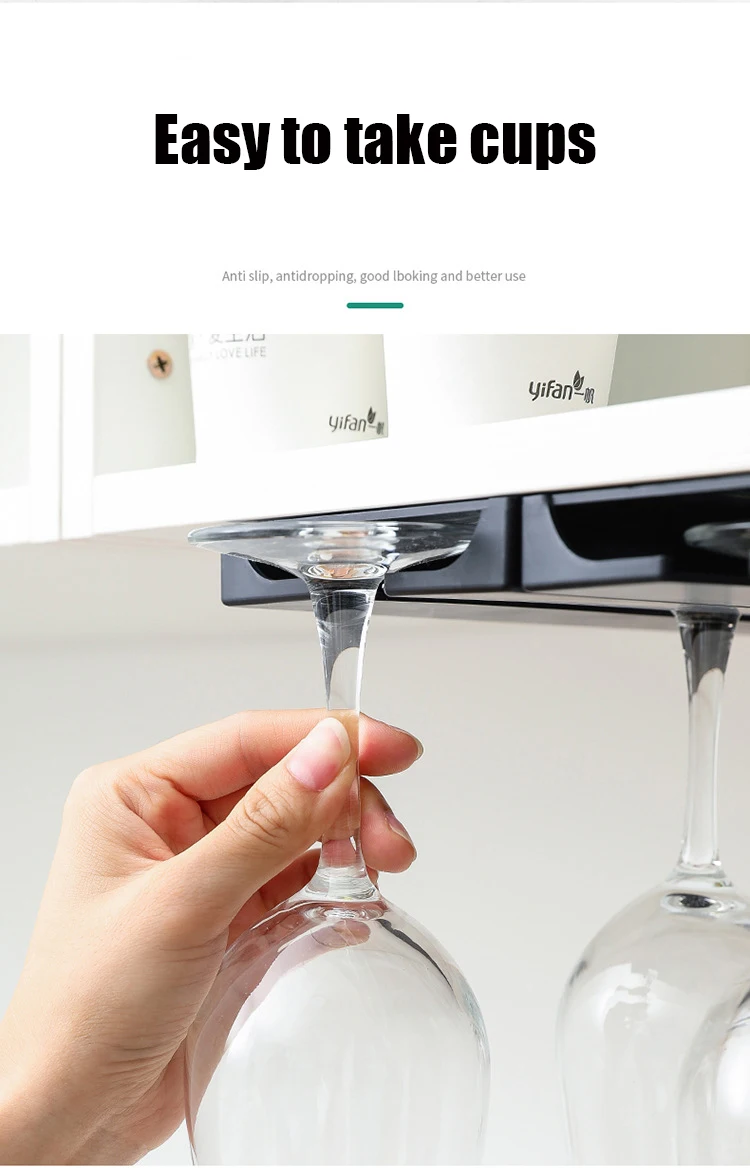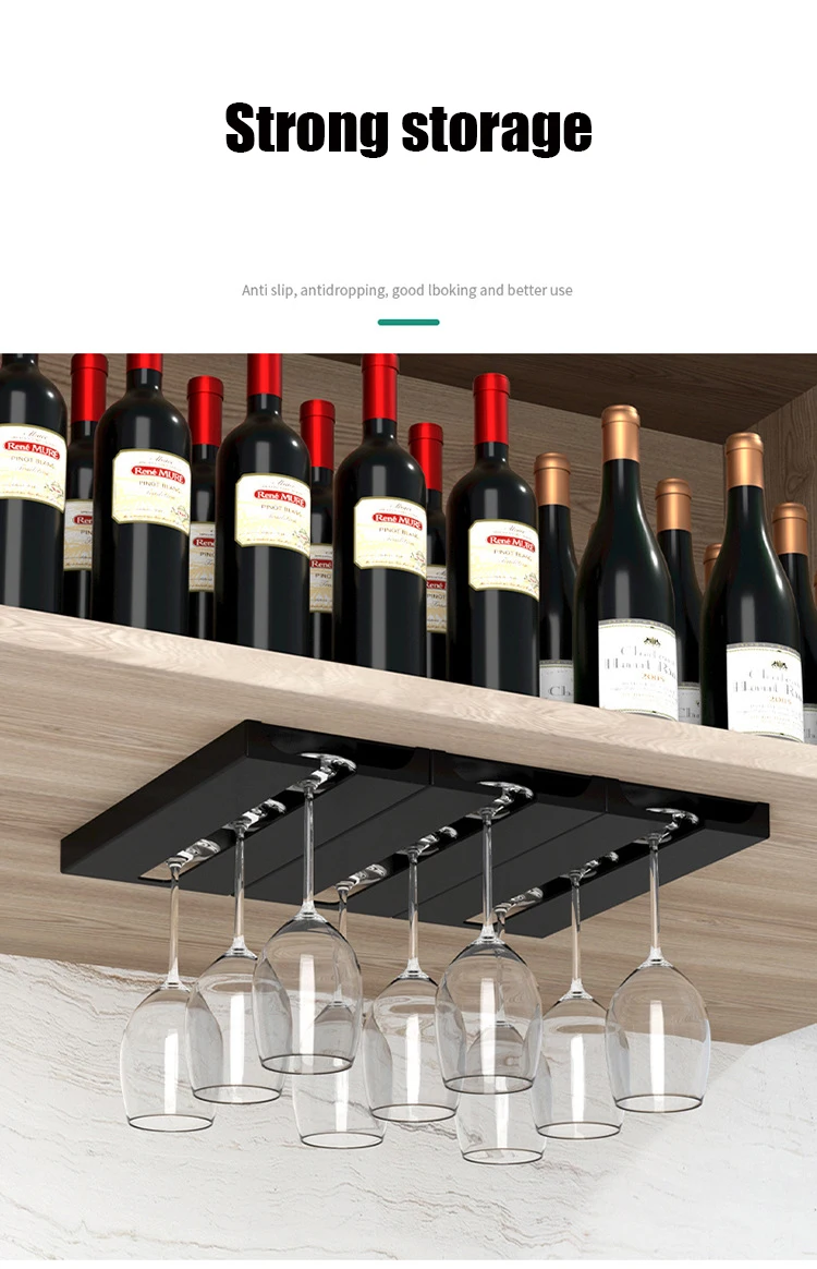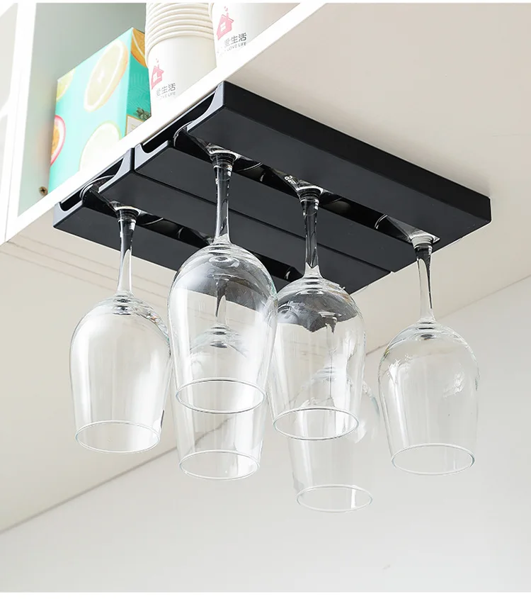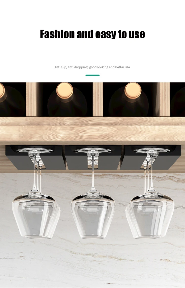 L’installation du support suspendu en verre à vin est simple et ne nécessite aucun outil. Il suffit de retirer la protection de l’adhésif et de coller le support sur une surface propre et lisse de votre armoire de cuisine.