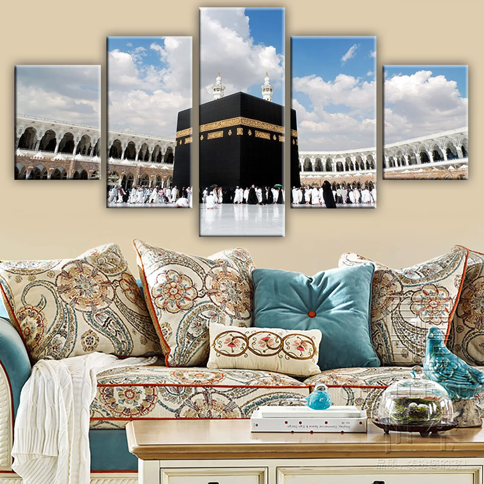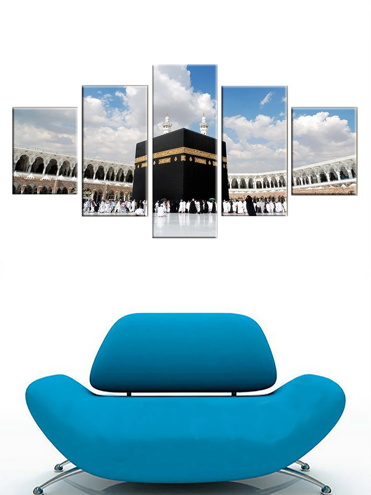 Le décor mural en toile d’art en 5 pièces avec des affiches noires islamiques et des photos imprimées est un excellent choix pour ceux qui recherchent une décoration moderne et élégante pour leur maison. Les images montrent clairement le style contemporain de ces peintures, qui peuvent être parfaitement adaptées à une chambre ou un salon.