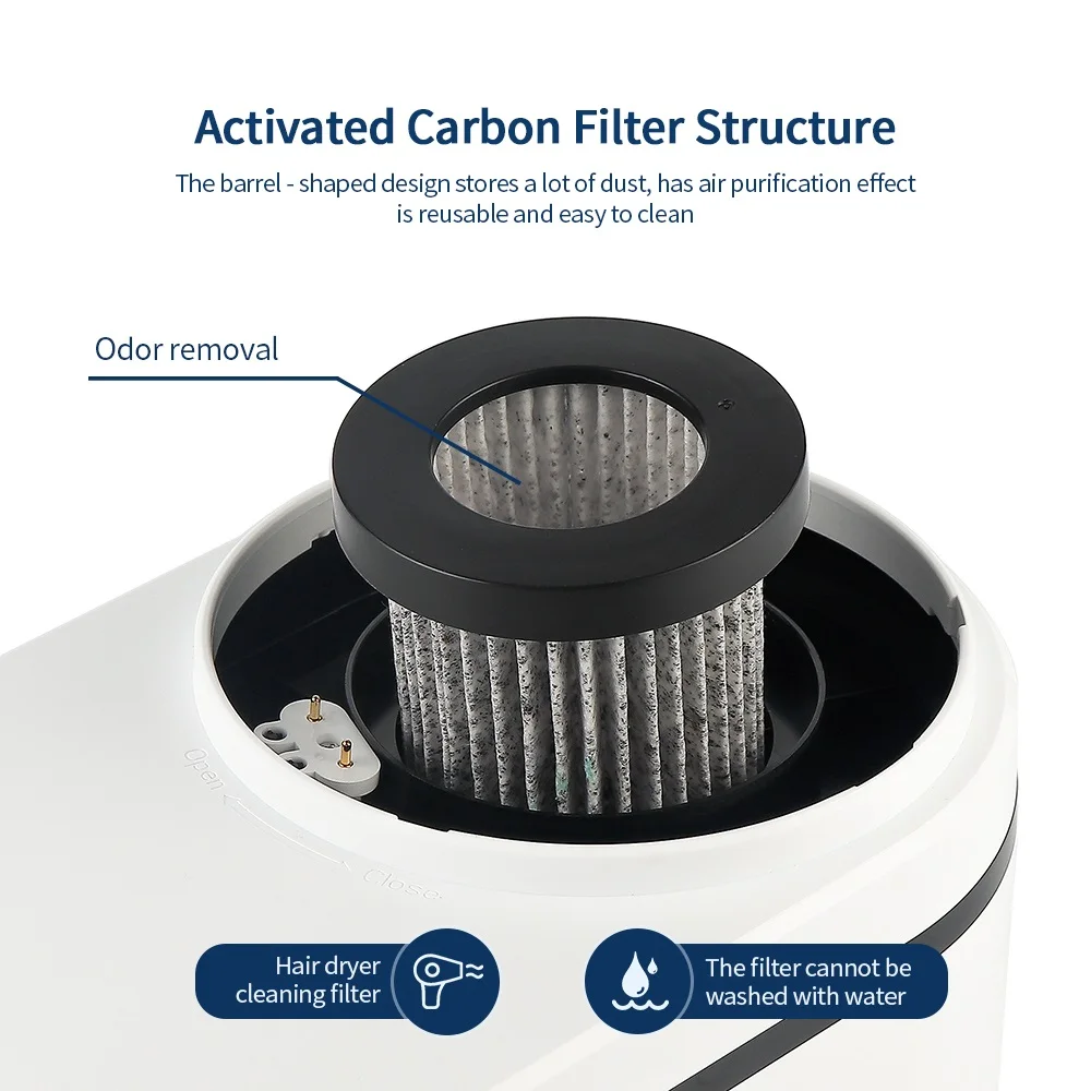 environnement calme. Le filtre à charbon actif est facile à nettoyer et élimine efficacement les odeurs. Par