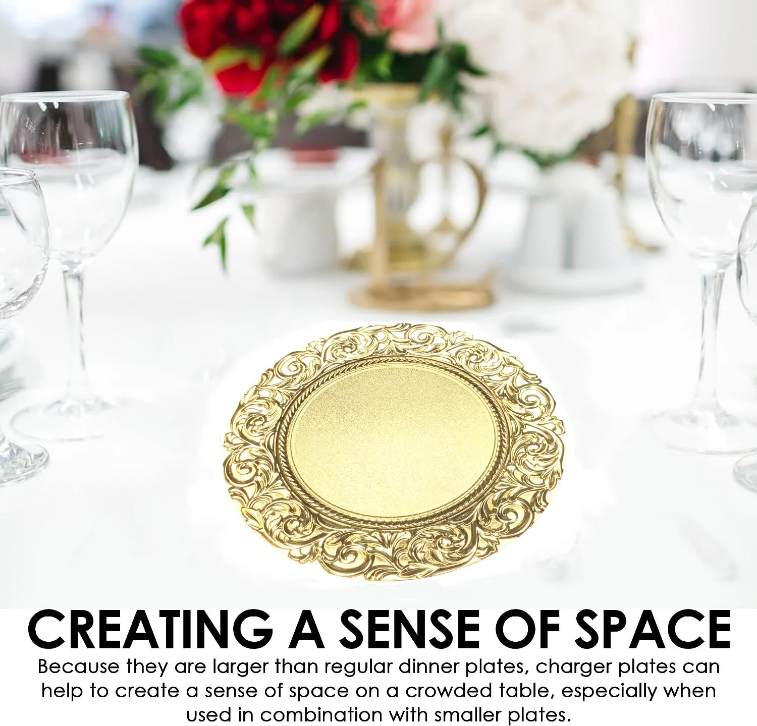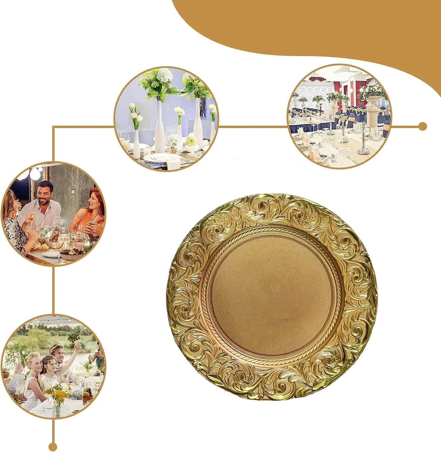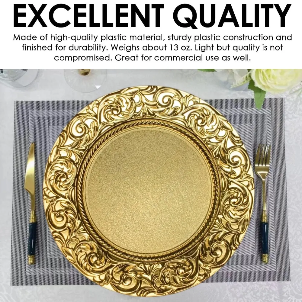 • Cet ensemble comprend 6 plaques de chargeur en plastique doré, parfaites pour servir le dîner ou comme ajout décoratif à votre table.