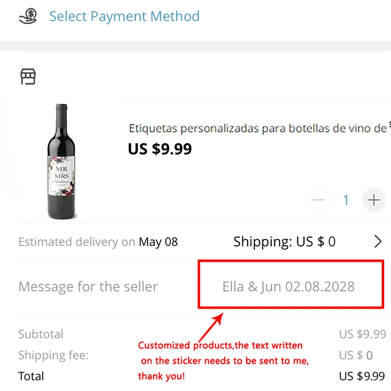 imprimé sur les autocollants. Si vous oubliez d’envoyer votre texte, le vendeur imprimera les autocollants