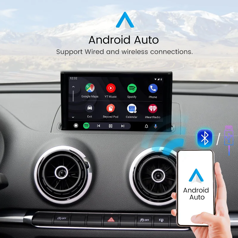 - Autoradio multimédia avec fonction sans fil, Carplay et Android