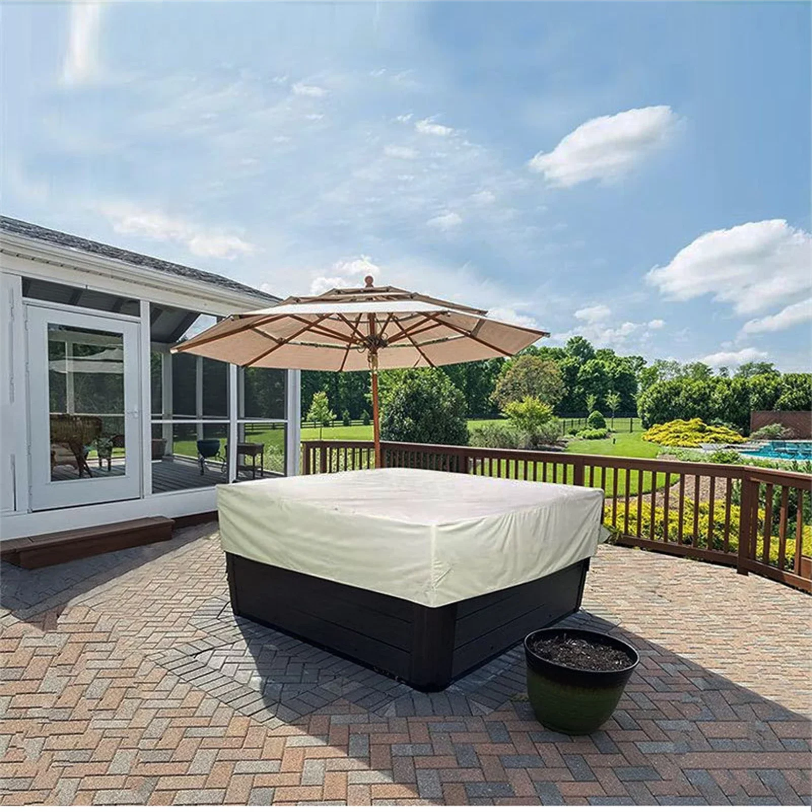 L’ourlet à cordon réglable offre un ajustement personnalisable, garantissant une sécurité exceptionnelle même dans des conditions venteuses. Cette couverture convient à différents jacuzzis en raison de sa taille carrée.