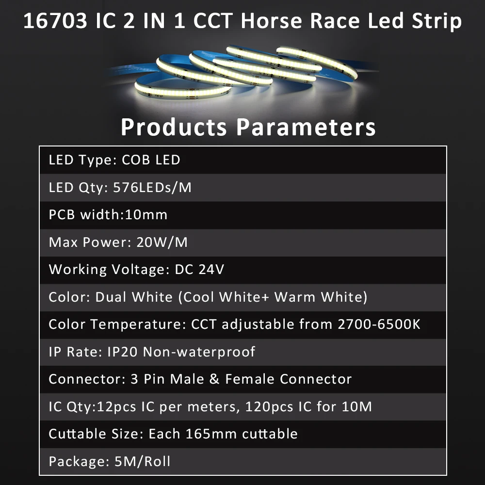 | Nom du produit | 16703 IC COB Horse Race Led Strip |