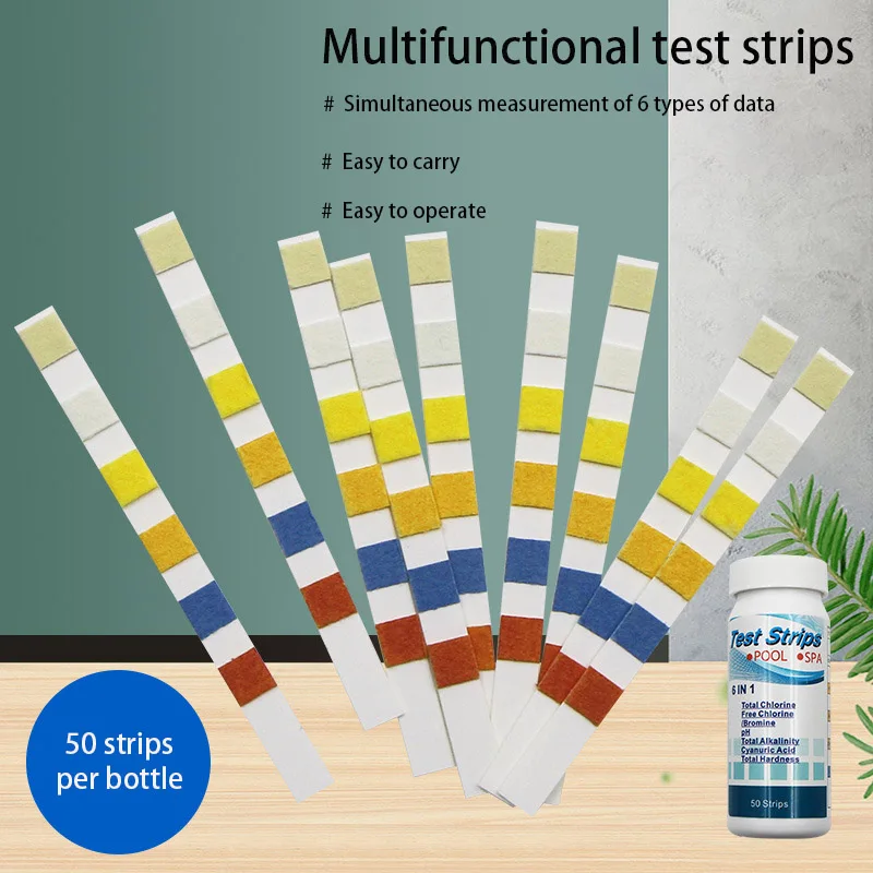 Les bandelettes de test de PH multi-usages sont un outil essentiel pour maintenir la qualité de l’eau de votre piscine ou spa. Grâce à leurs 6 fonctions de test, elles vous permettent de mesurer le chlore libre, le brome libre, le pH, l’alcalinité totale, la dureté totale et l’acide cyanurique.