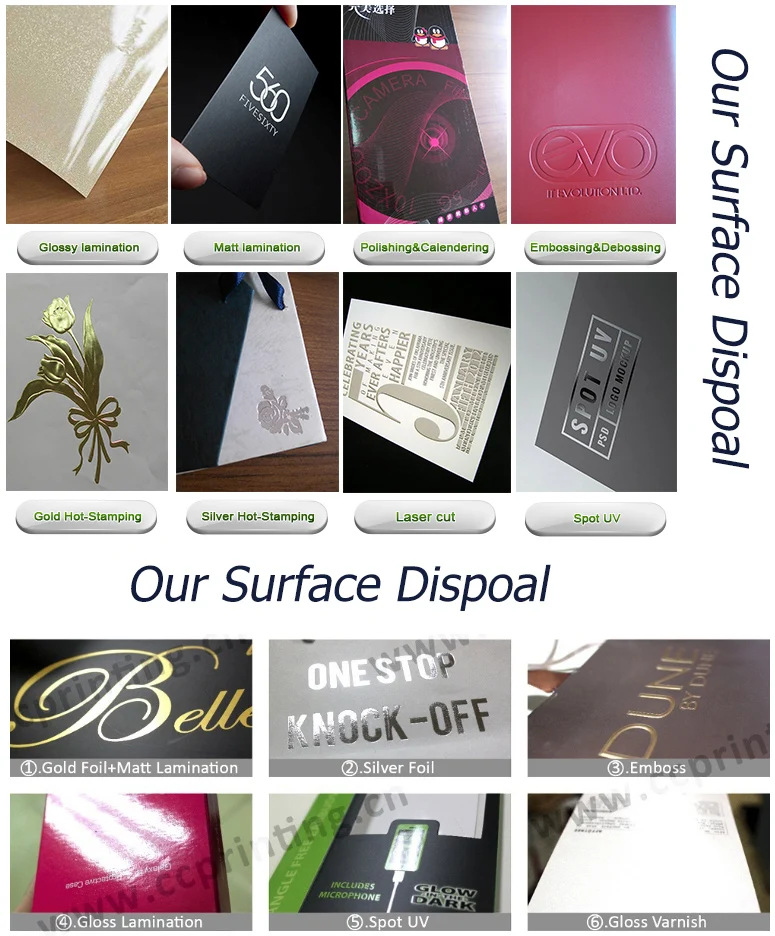 Gaufrage, stratification brillante, stratification mate, estampage, revêtement UV, vernissage