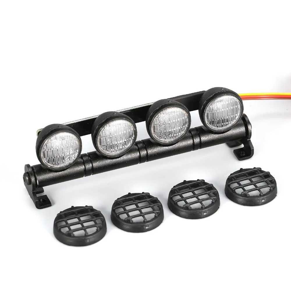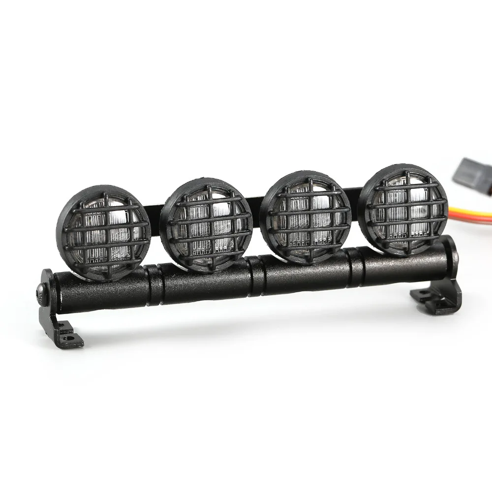 Cette barre lumineuse de toit LED est spécialement conçue pour les voitures RC. Elle dispose de 4 projecteurs et de différents modes de clignotement tels que le stroboscopique, le flash gauche et droit, l’eau courante, le flash rafale, le flash rapide et le mode toujours allumé. Elle est compatible avec les modèles de voitures RC 1/10 1/8 tels que le HSP, TAMIYA, CC01, Axial SCX10, etc. Fabriquée en alliage d’aluminium de haute qualité, elle offre une durabilité optimale. Pour l’utiliser, il suffit de connecter la ligne d’alimentation au canal 3 du récepteur.