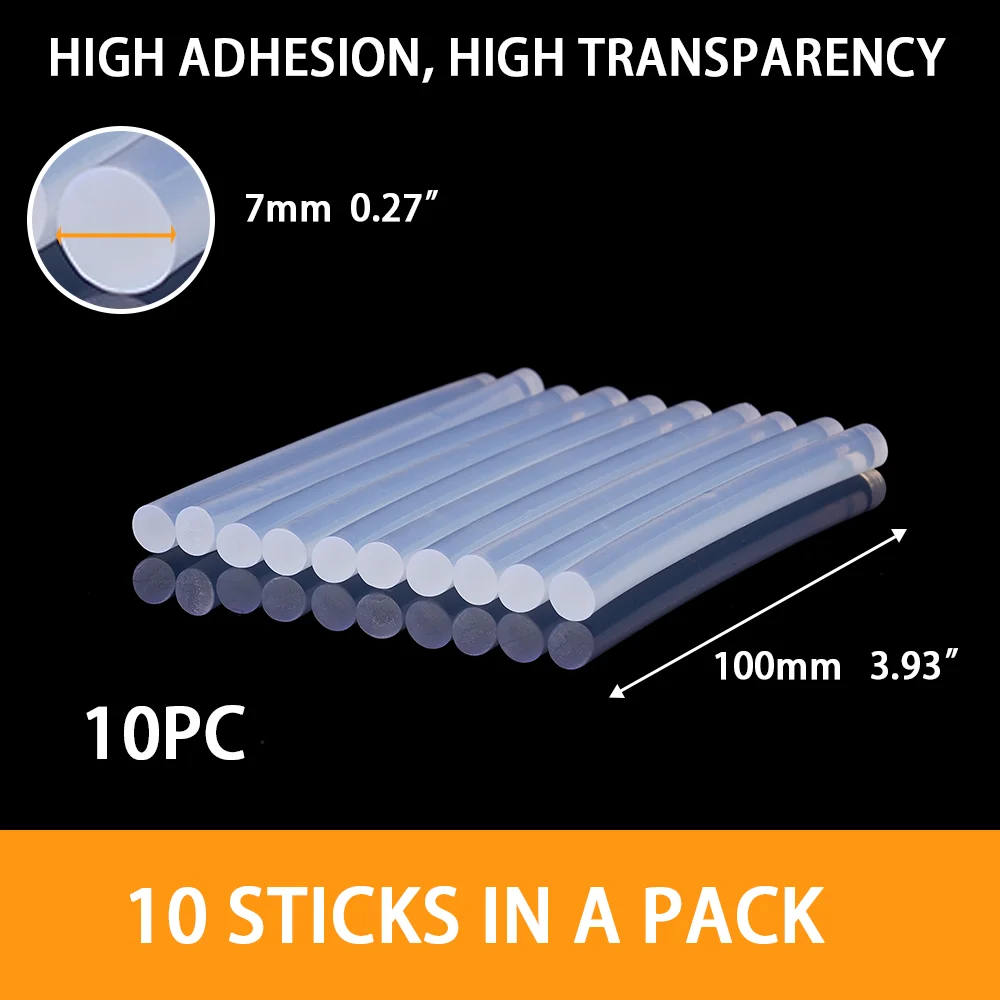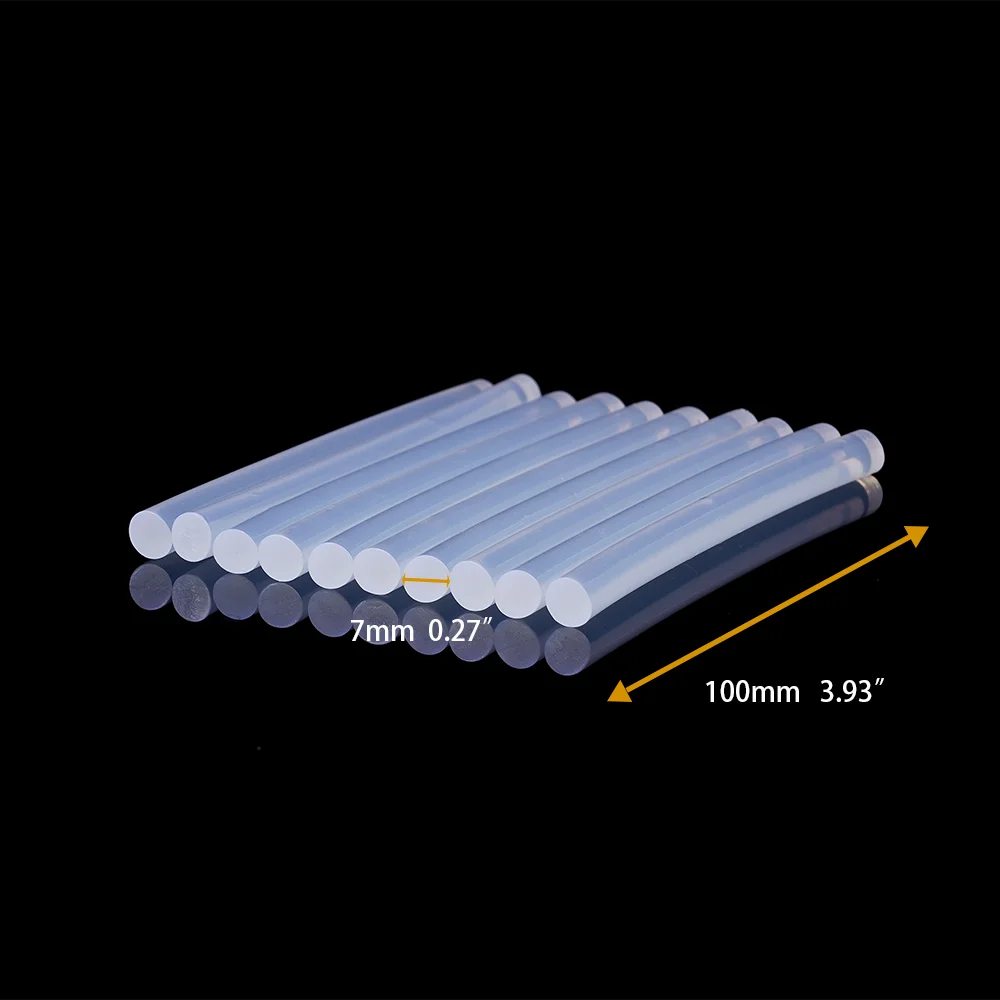 Voici les points importants à retenir du produit « Bâtons adhésifs clairs de 7mm x 100mm, ensemble de 10 ou 20 pièces, pour thermofusible, pistolet à colle, accessoires artisanaux en alliage »: