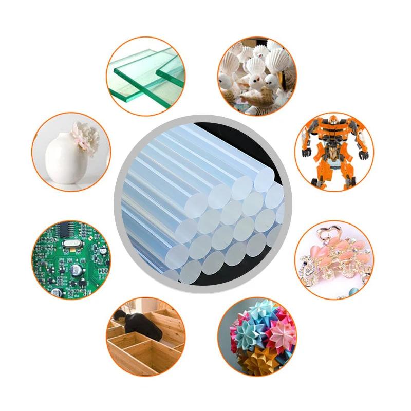Les bâtons de colle thermofusible sont utilisés dans un mini pistolet à colle à haute température. Ils sont non toxiques et ont une viscosité de 5,300cps. Leur température d’utilisation est de 160 à 180 degrés et ils se solidifient en 8 à 10 secondes. Ces adhésifs de colle chaude sont largement utilisés dans l’emballage, la fabrication artisanale, le bois, les produits de Noël, le plastique, etc.