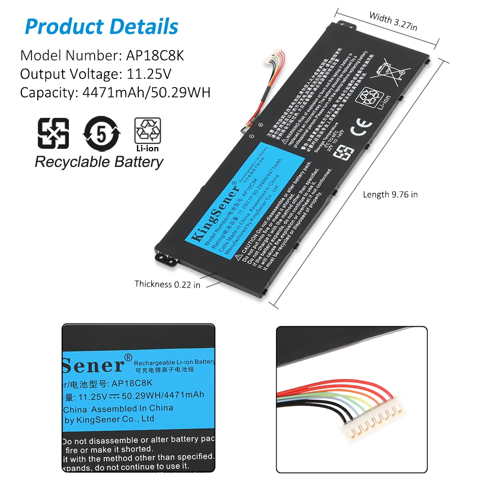 | Spécification | Capacité: 4471mAh/50.29WH |