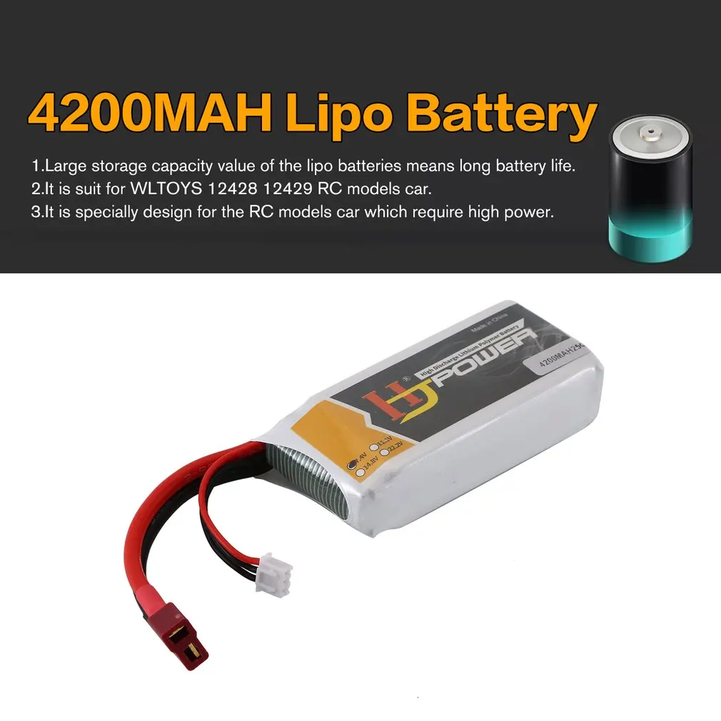 La batterie Lipo 4200MAH 7.4V 25C est un choix idéal pour les propriétaires des modèles de voiture RC WLTOYS 12428 et 12429. Sa grande capacité de stockage offre une longue durée de vie de la batterie, ce qui est idéal pour de longues sessions de jeu. De plus, son taux de décharge continu élevé permet une performance optimale. Cependant, il est important de noter que cette batterie ne convient qu’aux modèles RC nécessitant une puissance élevée. Assurez-vous de vérifier la compatibilité avec votre modèle avant de faire votre achat.