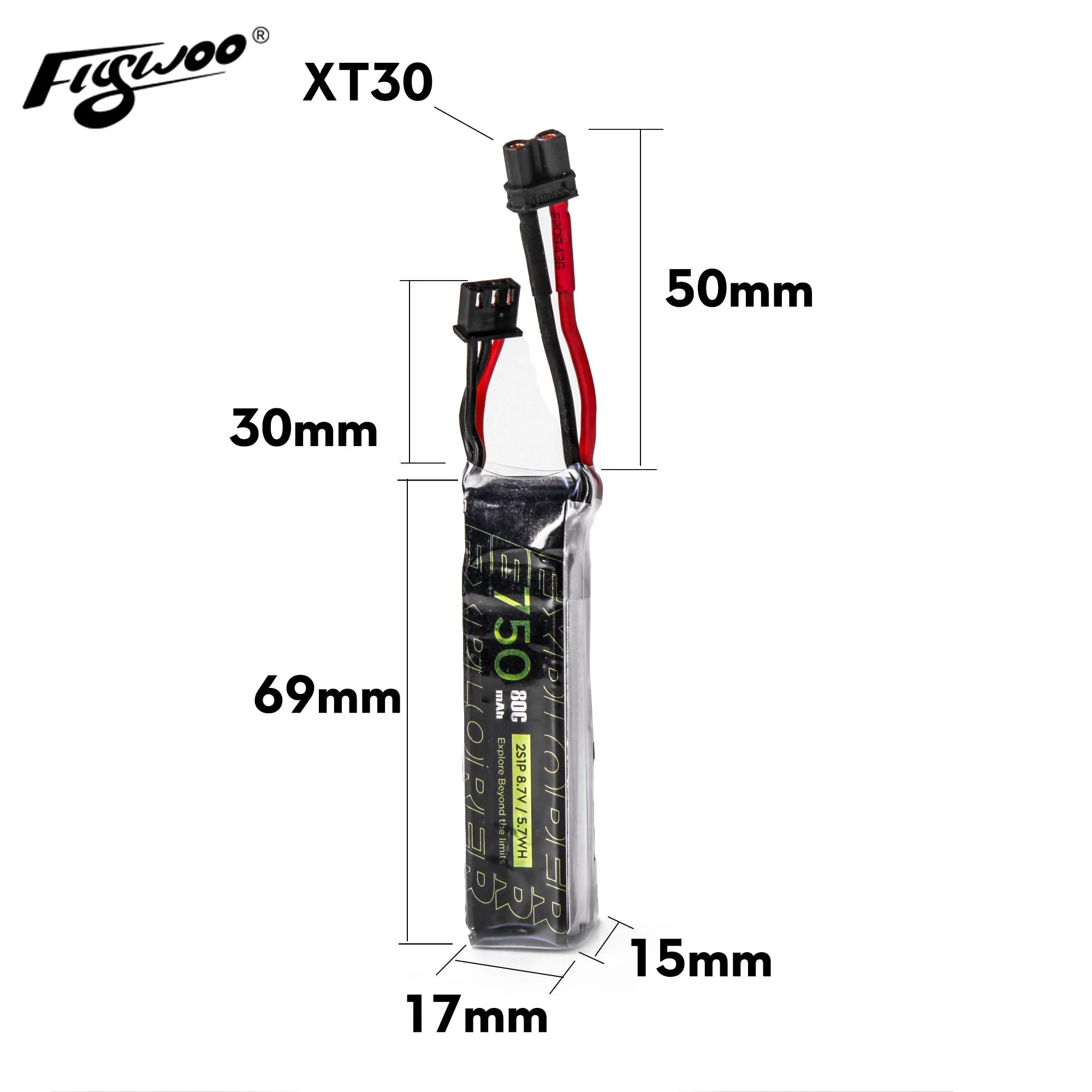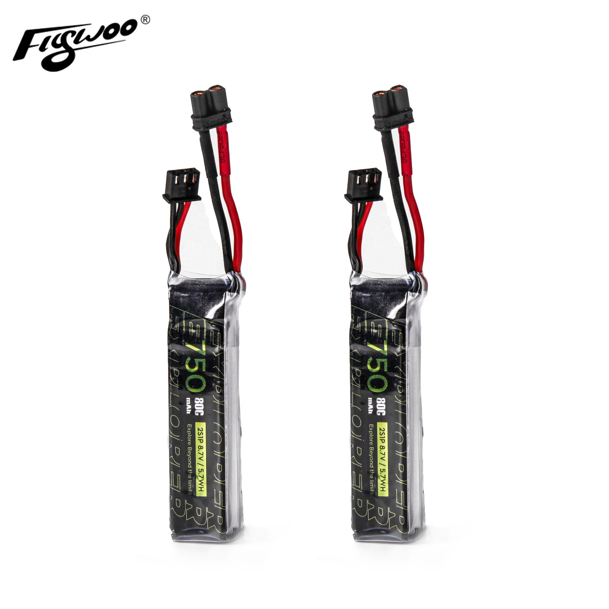 - FLYWOO 2PCS Explorer 750mAh HV 2S 80C Lipo Batterie Pour Tiny Quad XT30