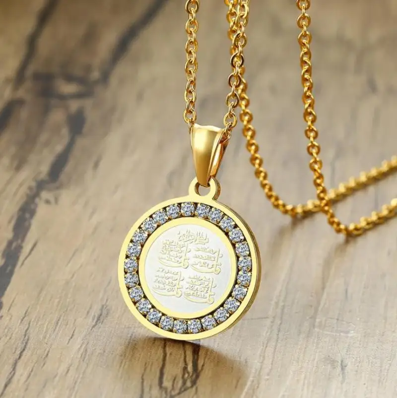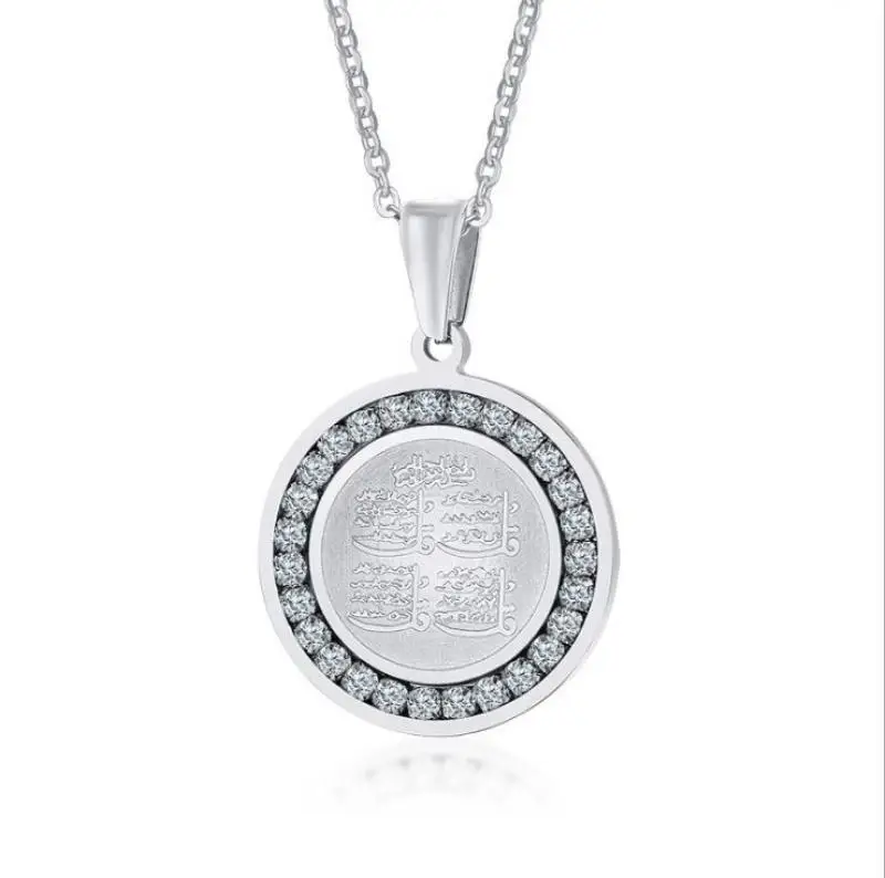 L’ensemble Zcompresses islamiques pour hommes et femmes, collier pendentif, insigne d’écriture, bijoux de mode Eid, accessoires cadeaux est d’une qualité exceptionnelle. Fabriqué en alliage de zinc de haute qualité, il est disponible en couleur or/argent. Le contenu de l’emballage comprend un pendentif et un collier, avec une taille de collier de 24 pouces.