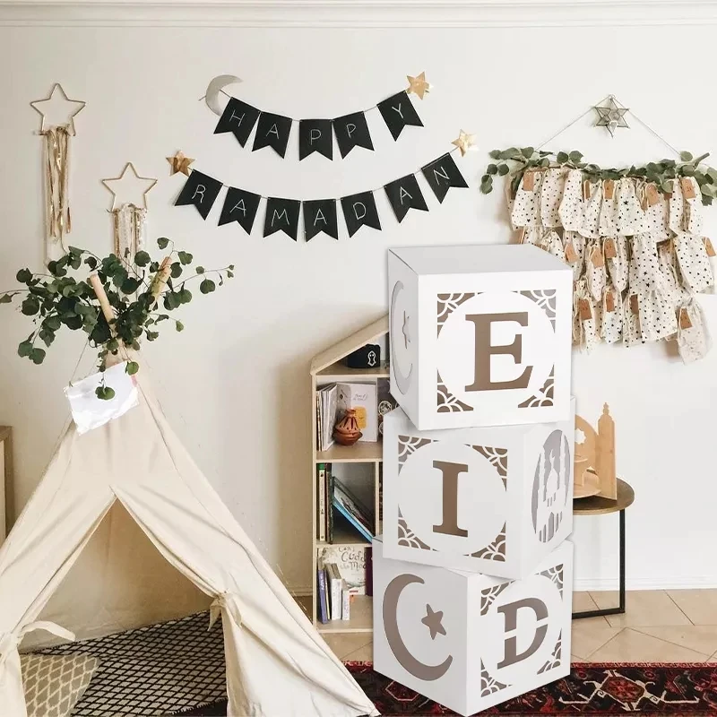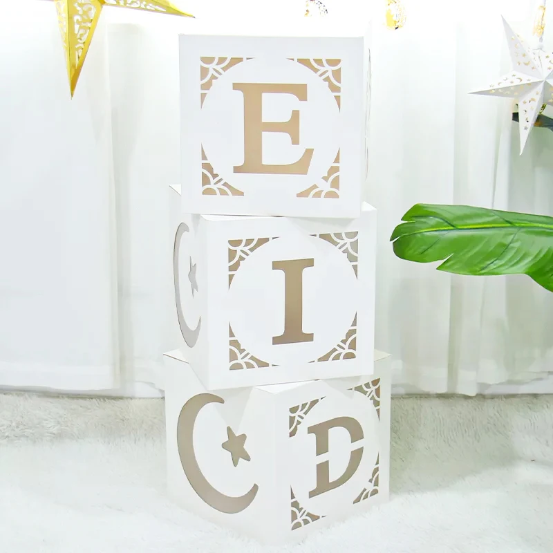 - Boîte à ballons avec lettres décoratives Eid Mubarak, accessoires de décoration pour fête islamique musulmane, Ramadan Kareem