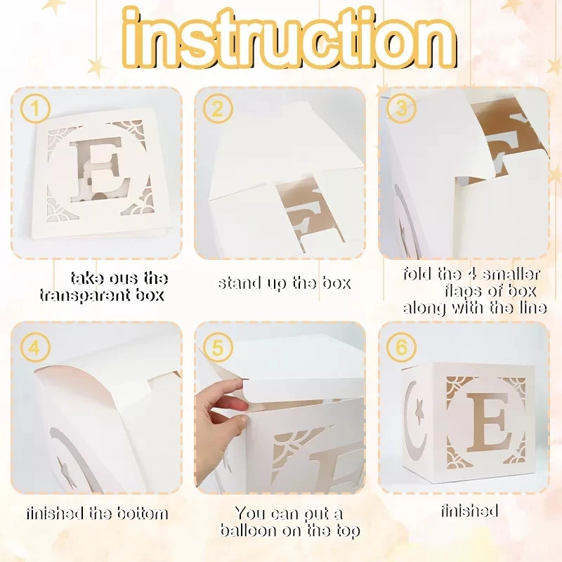 L’installation de la boîte à ballons Eid Mubarak est très simple. Les ballons sont déjà attachés ensemble, il vous suffit donc de les accrocher au mur ou à tout autre endroit de votre choix. Vous pouvez également les fixer avec du ruban adhésif ou de la ficelle. En quelques minutes, vous aurez une décoration festive prête à l’emploi.