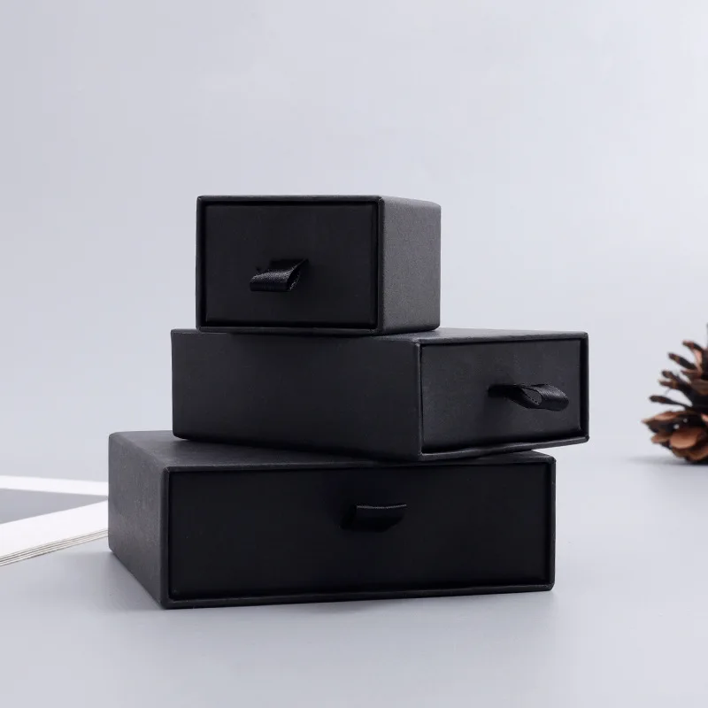 Boîte cadeau bijoux tiroir carton noir