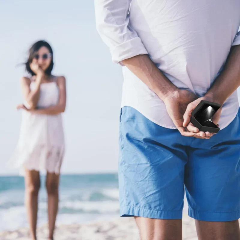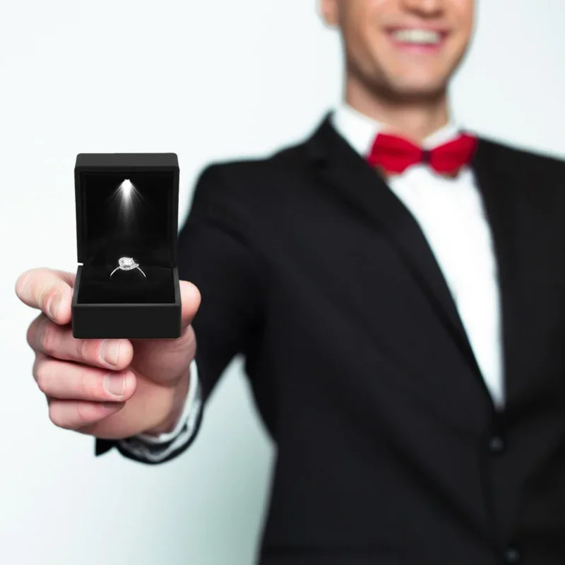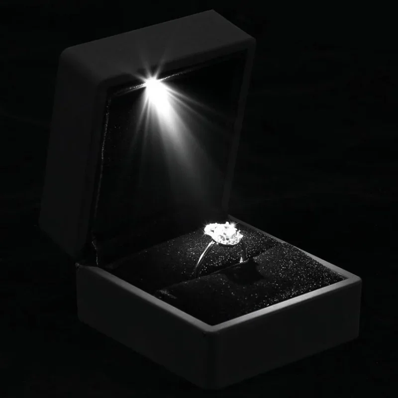 Une petite lumière LED est installée dans la boîte. Lorsque celle-ci est ouverte, elle émet une lumière blanche, ce qui rend les bijoux plus éblouissants et l’anneau scintillant toujours visible.