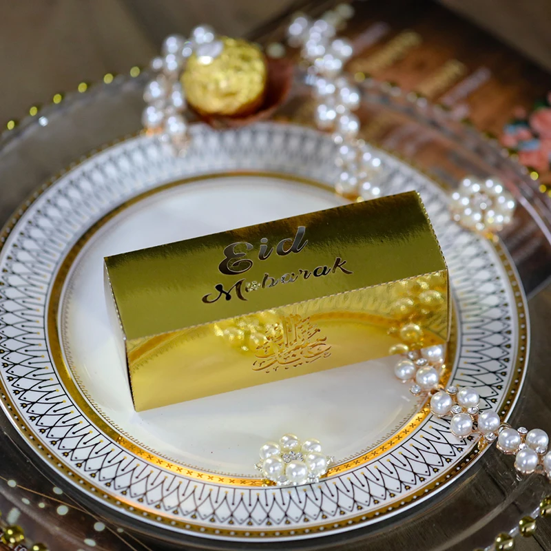 Ce produit comprend 10 pièces de boîtes à bonbons au chocolat pour Eid Mubarak.