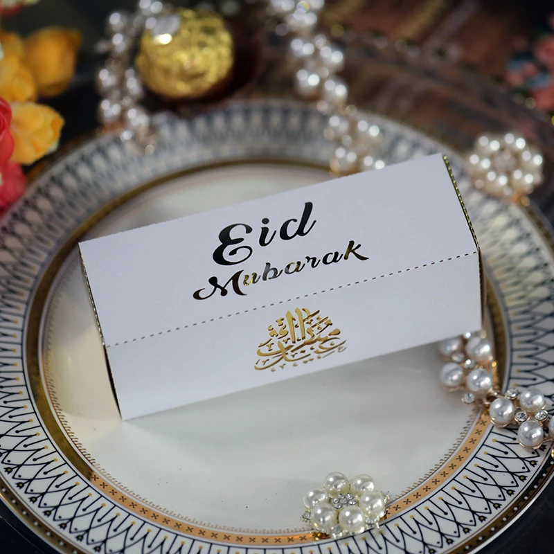 Cette boîte à bonbons au chocolat pour Eid Mubarak est une excellente option pour les festivités musulmanes comme le Ramadan Kareem et l’heureux harcèlement Fitr. Fabriquée en papier de haute qualité, elle est à la fois durable et écologique. Les 10 pièces incluses offrent une grande capacité de stockage pour vos biscuits et autres produits de boulangerie.