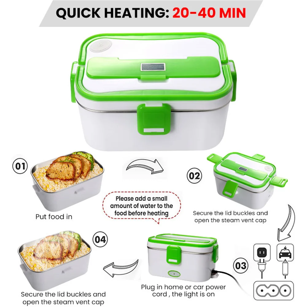 La boîte à lunch chauffante électrique avec conteneur d’isolation de doublure en acier inoxydable portable offre une solution pratique pour ceux qui ont besoin de maintenir leur repas chaud lors de leurs déplacements. Son fonctionnement à température constante PTC permet de conserver le goût original des aliments tout en assurant la sécurité et la protection de l’environnement. Les matériaux résistants aux hautes températures garantissent la durabilité de la boîte à lunch. De plus, les accessoires inclus, tels qu’une fourchette en acier inoxydable, une cuillère et une boîte à légumes en plastique, la rendent encore plus pratique à utiliser. Cependant, il est important de noter que la capacité de la boîte à lunch est de 450 ml, ce qui peut ne pas être suffisant pour certains utilisateurs. Dans l’ensemble, c’est un produit recommandé pour ceux qui cherchent une façon pratique de garder leur repas chaud où qu’ils aillent.