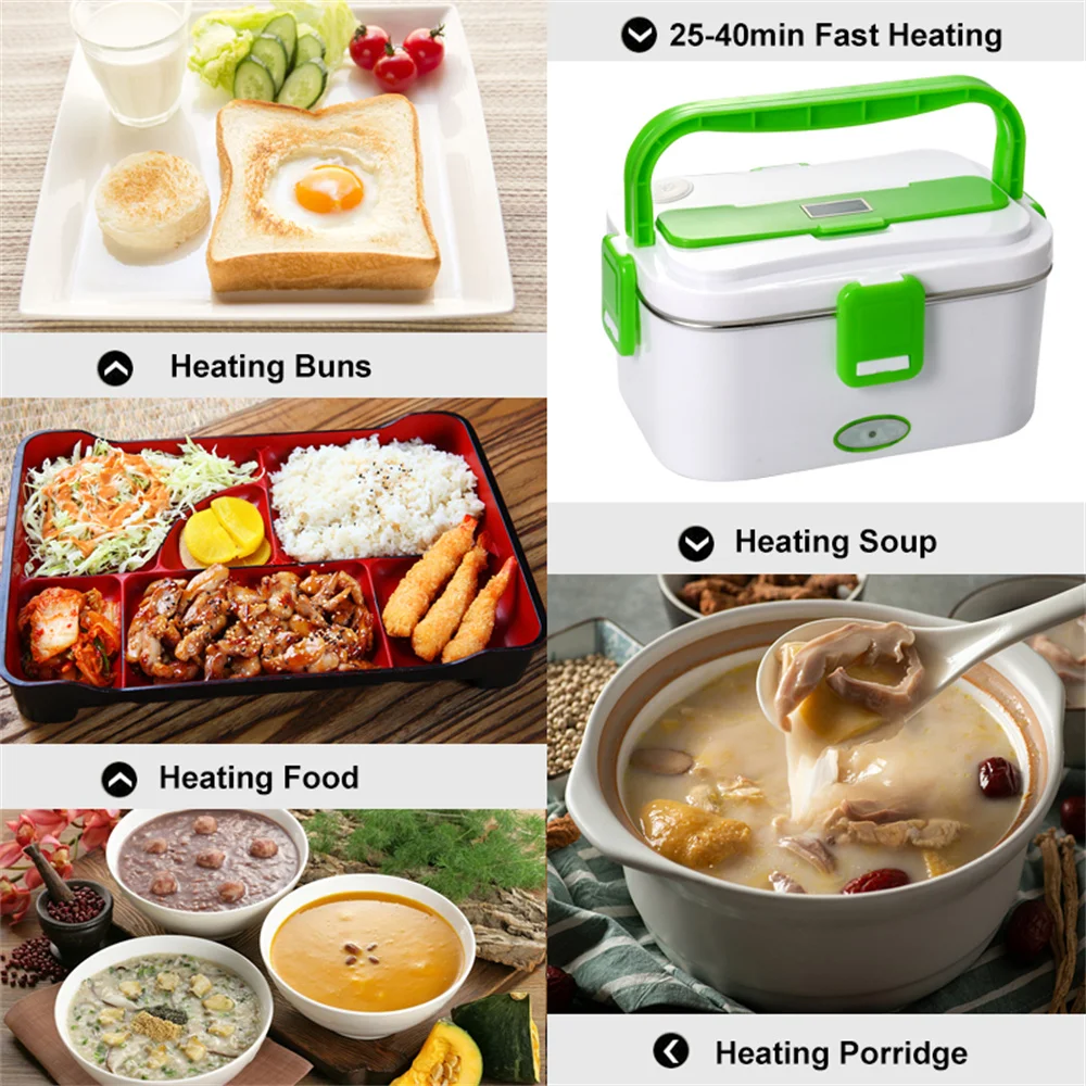 La boîte à lunch chauffante électrique avec conteneur d’isolation de doublure en acier inoxydable portable est un produit pratique pour les personnes qui souhaitent garder leur repas chaud lors de leurs déplacements. Elle offre une fonction de chauffage PTC qui permet de chauffer le riz, le lait, la soupe, le café chaud, etc. Sa tension réglementée européenne de 220V + 12V/24V la rend compatible avec la plupart des prises de courant. Le principe de chauffage intégré de la température constante PTC garantit la sécurité, la protection de l’environnement et l’économie d’énergie. De plus, la boîte à lunch est livrée avec des accessoires pratiques tels qu’un réservoir intérieur en acier inoxydable, une fourchette en acier inoxydable, une cuillère, une boîte à légumes en plastique de 450 ml, un sac d’isolation thermique et un cordon d’alimentation. Son design compact et portable en fait un choix idéal pour une utilisation à la fois dans la voiture et à la maison.