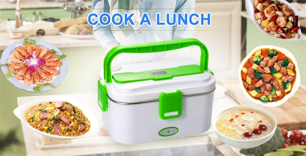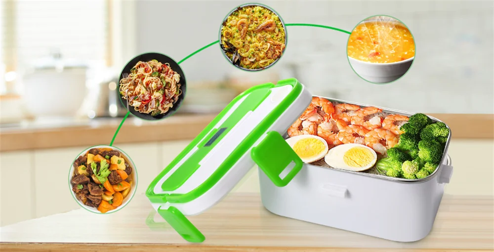 R: Oui, la boîte à lunch est livrée avec un réservoir intérieur en acier inoxydable, une fourchette en acier inoxydable, une cuillère, une boîte à légumes en plastique, un sac d’isolation thermique, un emballage anglais, un manuel en anglais et deux cordons d’alimentation.