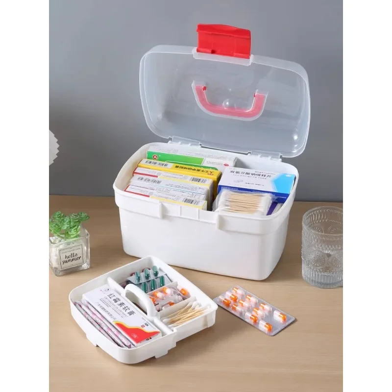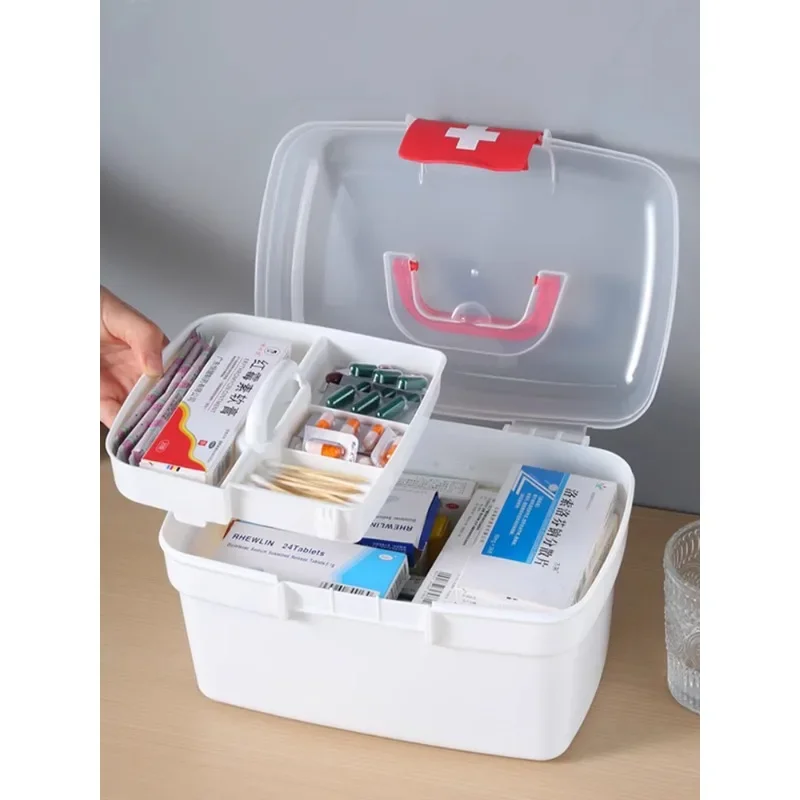 - Le produit a plusieurs couches, permettant un stockage organisé et efficace des médicaments et des articles de premiers soins.