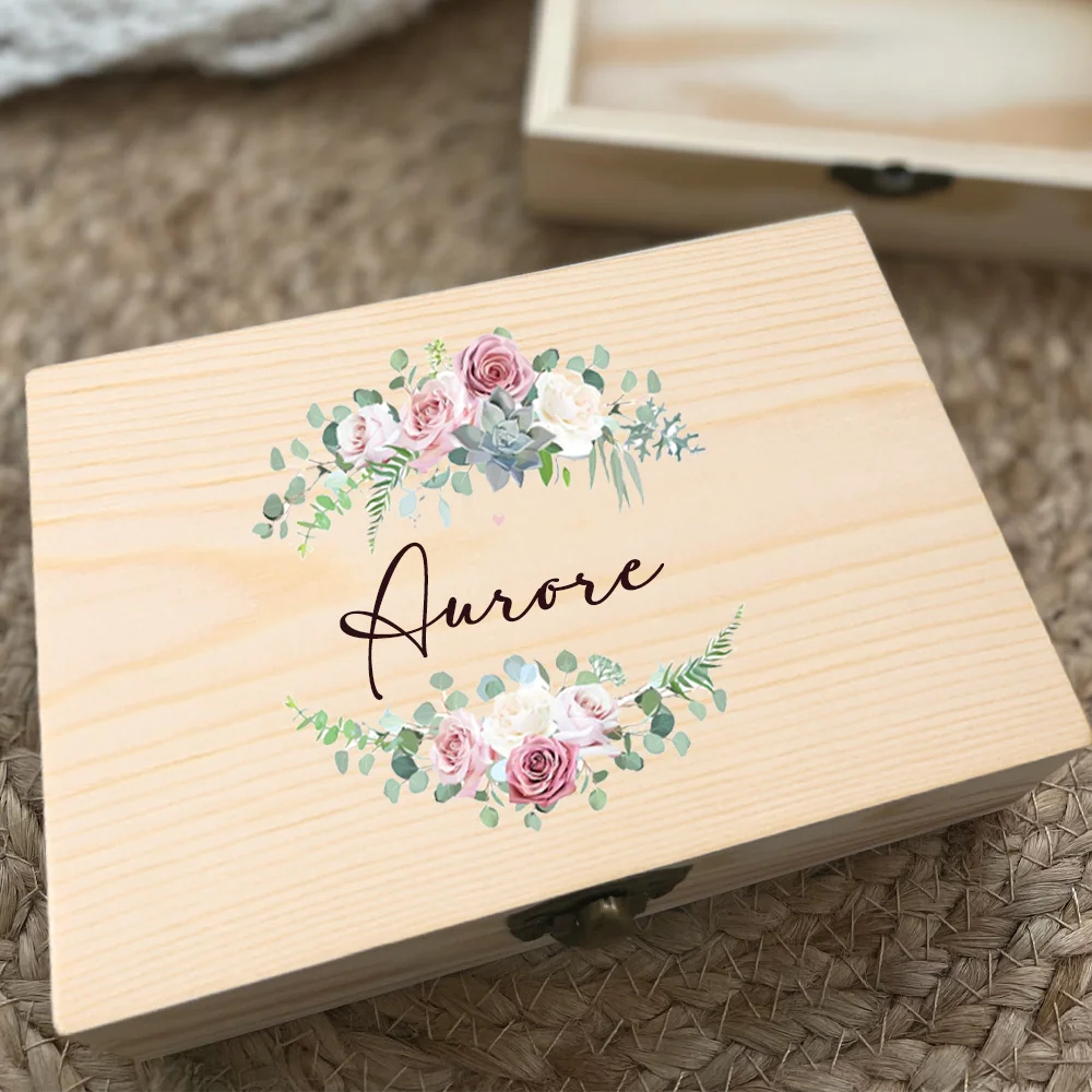 Cette boîte à mémoire personnalisée avec couronne ouverte est vraiment magnifique. Le design floral coloré lui donne un style romantique très tendance. C’est un cadeau parfait pour les demoiselles d’honneur ou les filles de fleur lors d’un mariage. La possibilité de personnaliser avec un nom et une date ajoute une touche spéciale à ce cadeau.