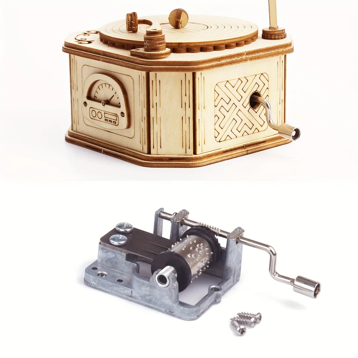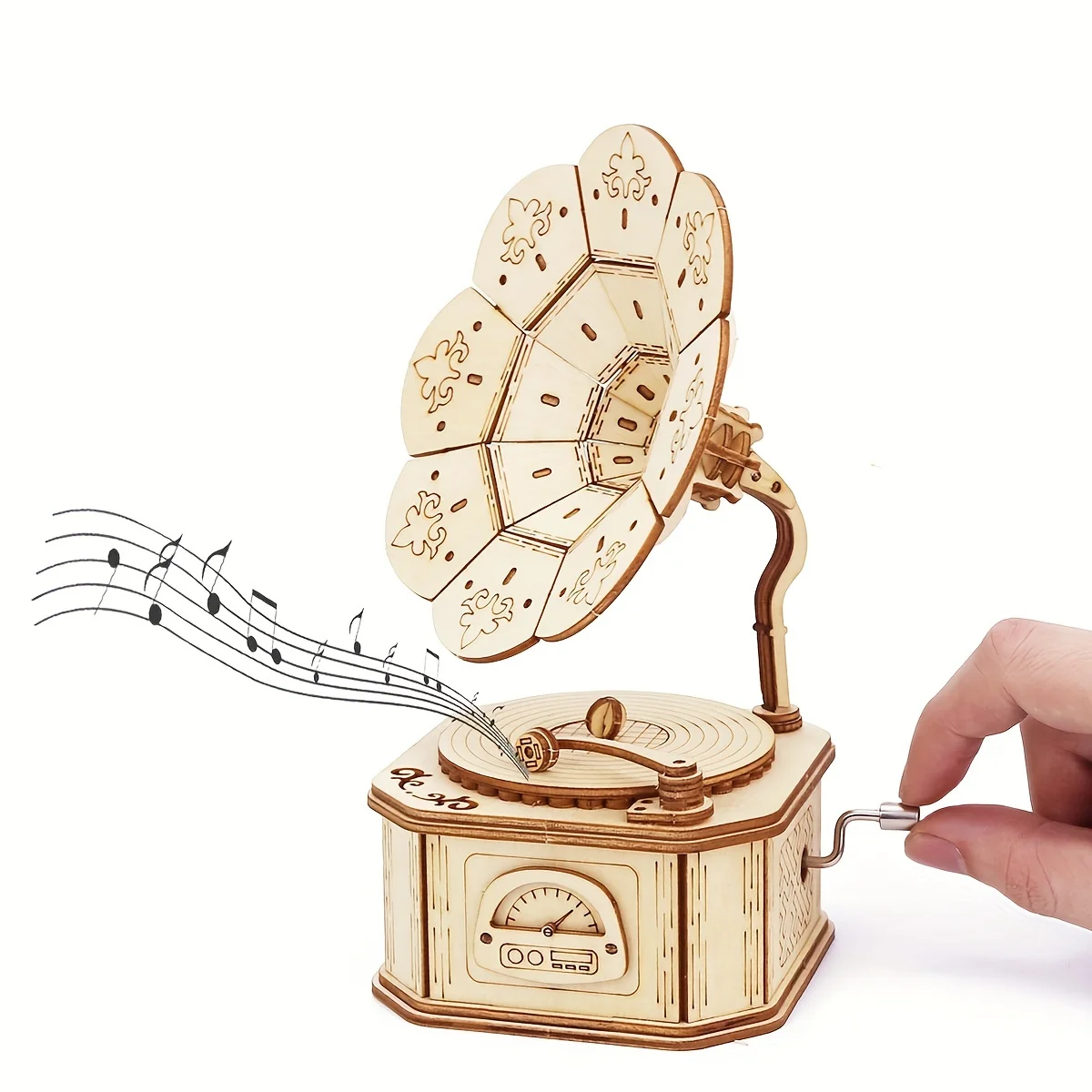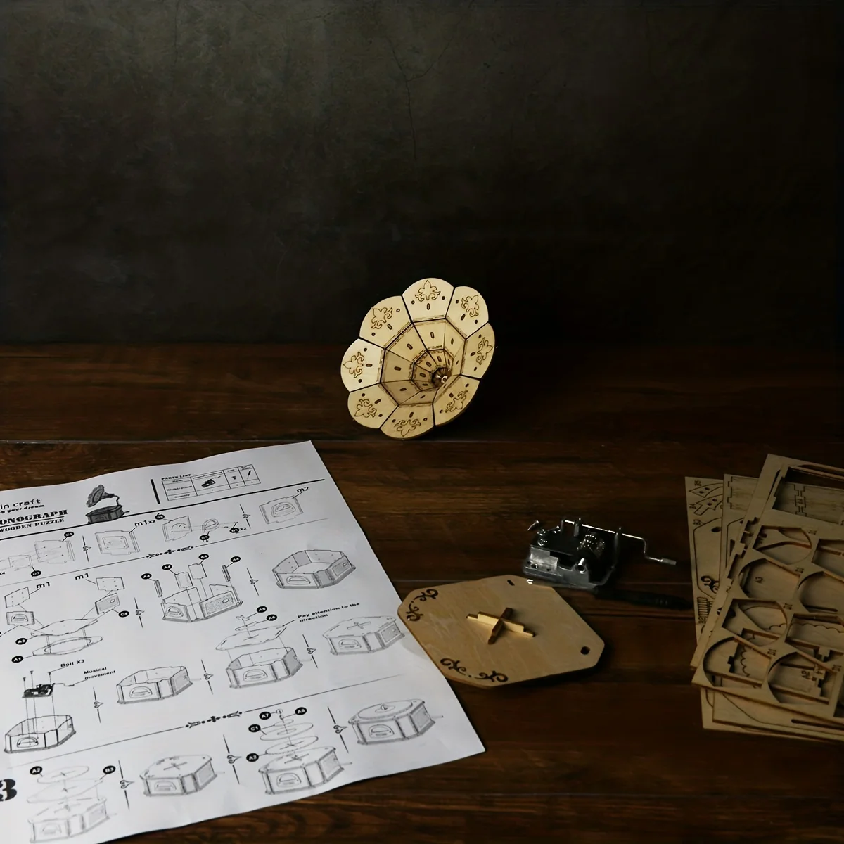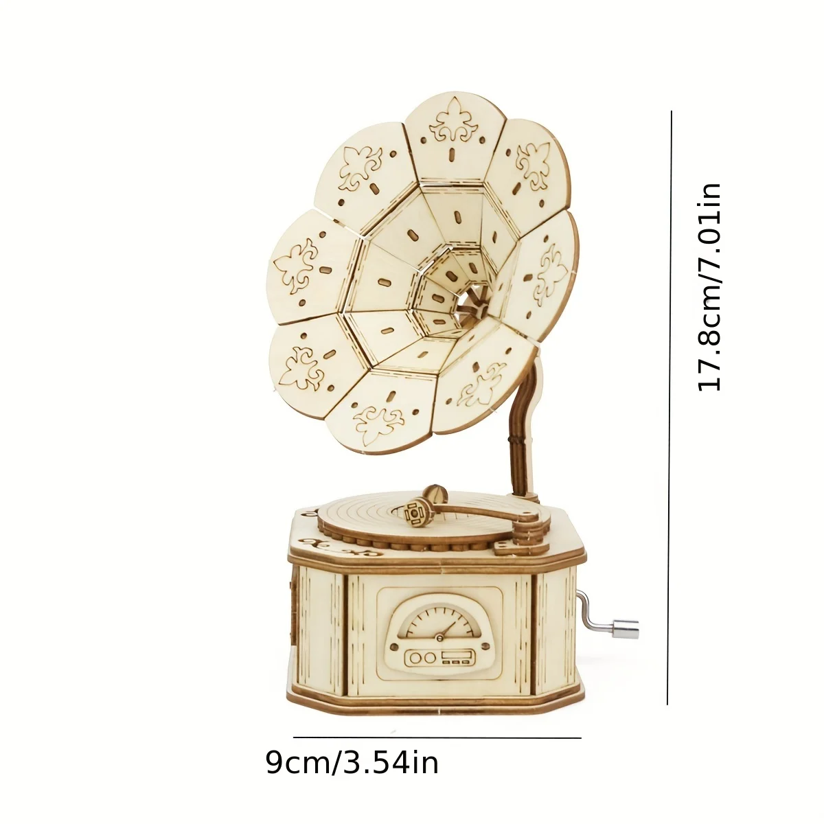 Boîte à musique gramophone en bois 3DConception originale et esthétique