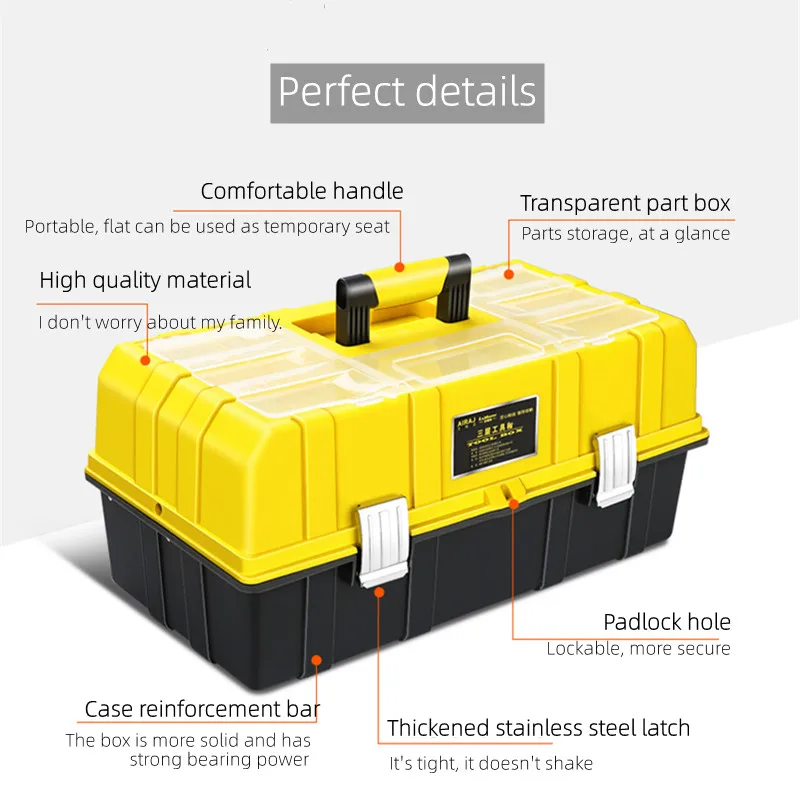 Cette boîte à outils est idéale pour le stockage quotidien à domicile, ainsi que pour une utilisation sur les chantiers de construction. Elle est également un outil essentiel pour les électriciens et les menuisiers.