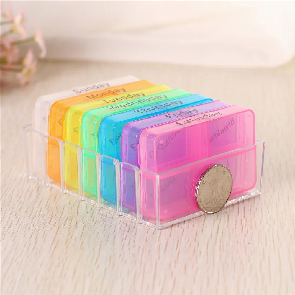 - Boîte à pilules arc-en-ciel avec braille imprimée, diviseurs de support, stockage de tablette, évaluation de la santé, médecine, 7 jours, 28 grilles