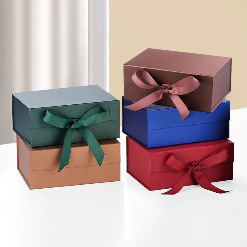 Emballage de boîte-cadeau avec fermeture magnétique en ruban, boîte-cadeau pliable de luxe