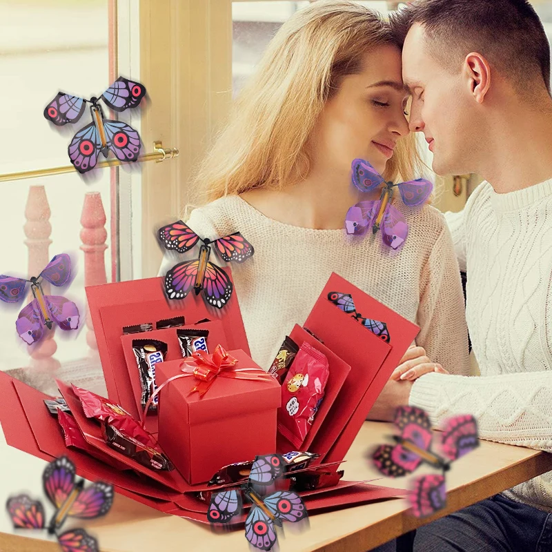L’assemblage de la boîte cadeau est simple et la vidéo d’assemblage est fournie pour faciliter le processus. Il est important de remplir la boîte cadeau de cadeaux et de collations avant d’y mettre les papillons, pour éviter qu’ils ne se tournent à l’intérieur de la boîte vide.