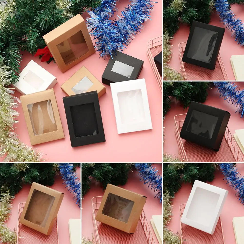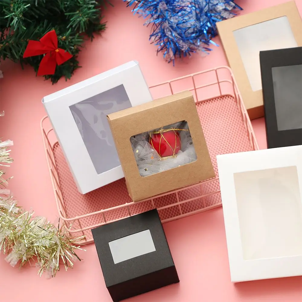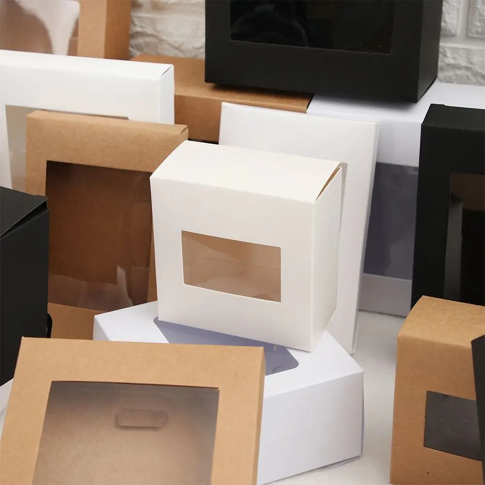 - Boîte cadeau en papier kraft vintage avec fenêtre en PVC transparent