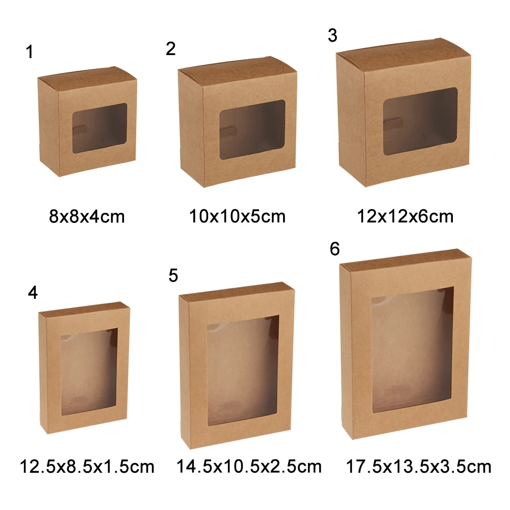 Les boîtes d’emballage de gâteau sont disponibles en plusieurs tailles : 8x8x4cm, 10x10x5cm, 12x12x6cm, 12.5×8.5×1.5cm, 14.5×10.5×2.5cm et 17.5×13.5×3.5cm.