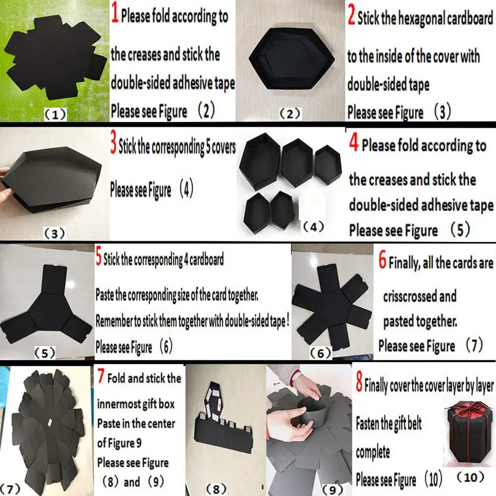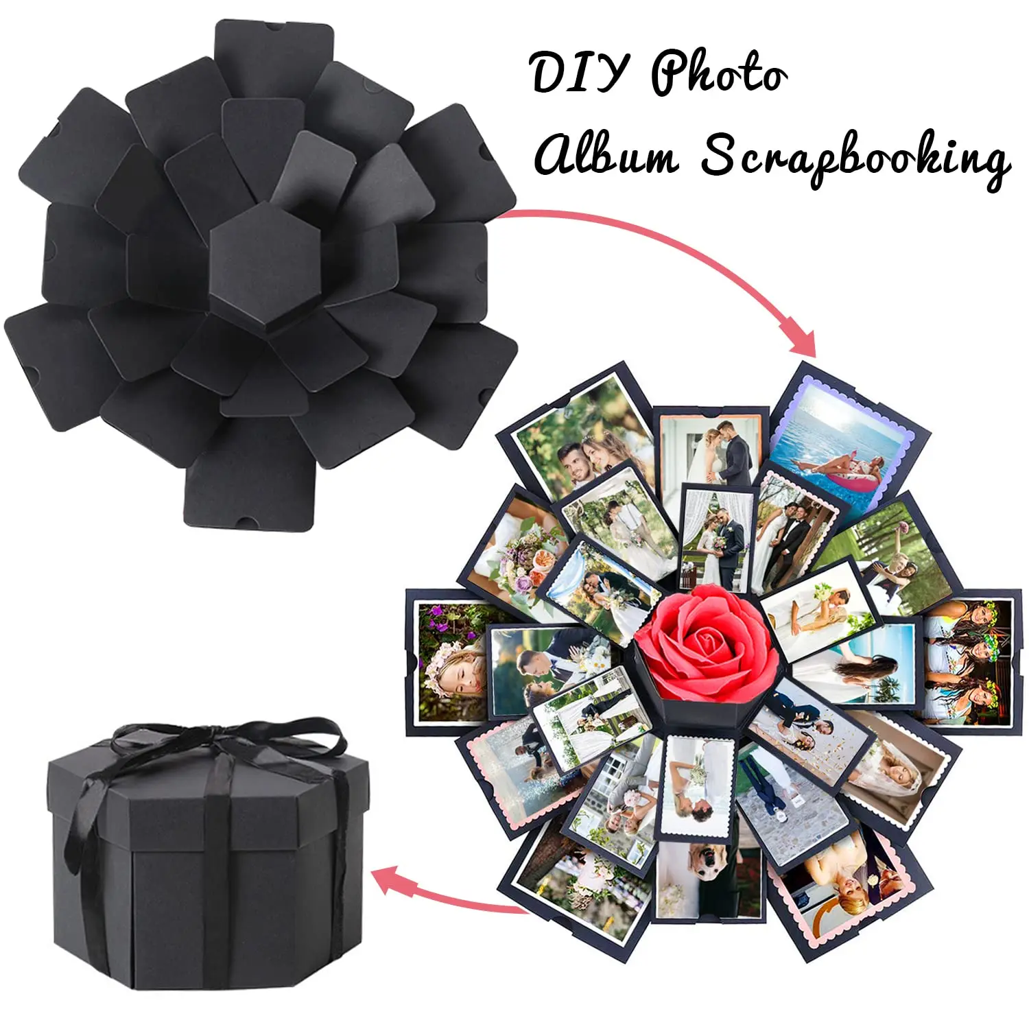 - Matériau: cette boîte d’autocollants pour album surprise est faite de papier kraft noir, léger et robuste. Il peut y avoir quelques plis pendant l’expédition, mais cela n’affectera pas l’utilisation. Vous pouvez décorer la boîte cadeau explosive à 6 faces avec des autocollants, des fleurs séchées et plus encore pour un cadeau unique.